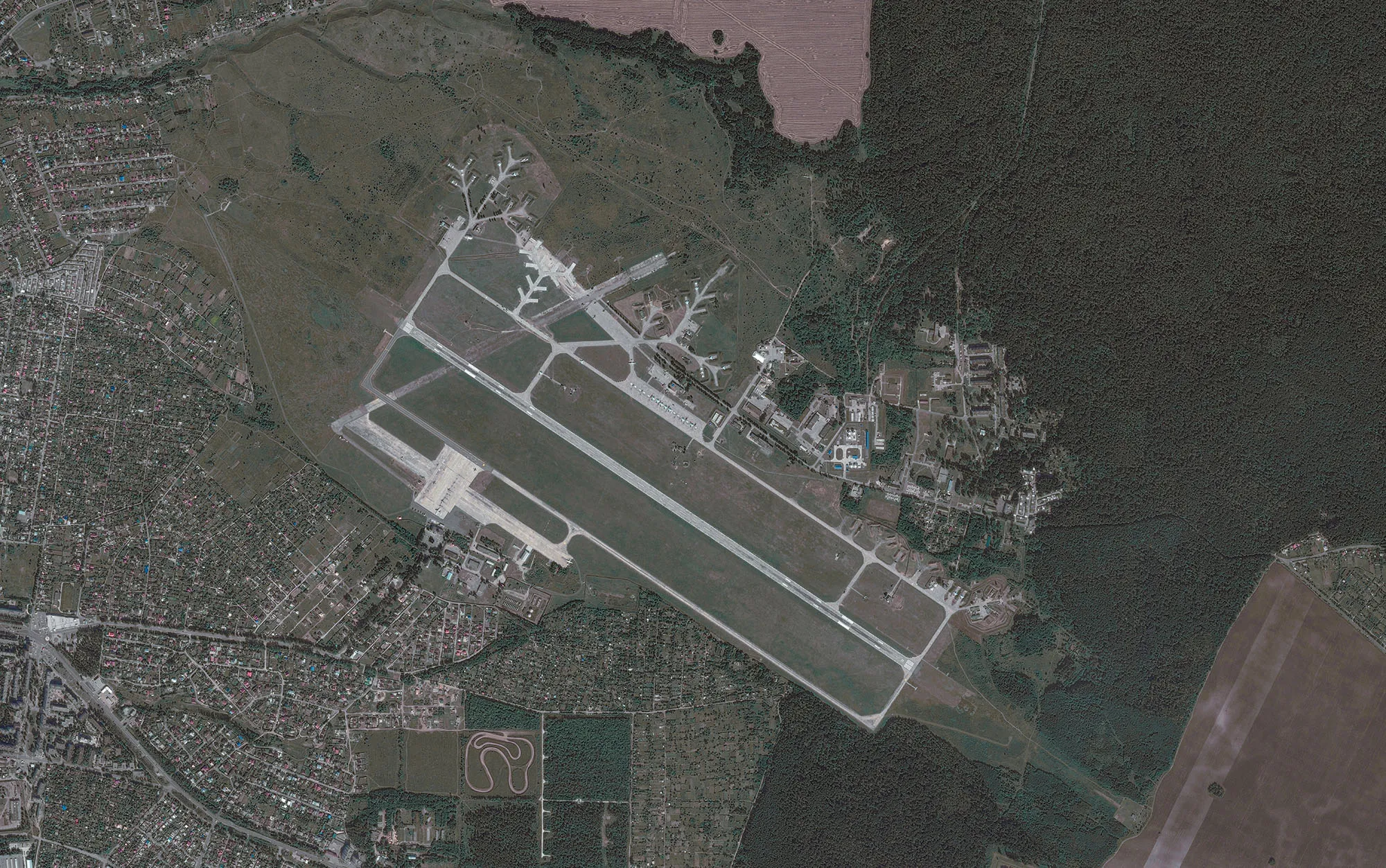 一张Maxar卫星拍摄的库尔斯克州库尔斯克东机场的图像。摄影师:Maxar Technologies/Getty Images周一,乌克兰向距离区域首府不到10公里(6英里)的库尔斯克-沃斯托奇机场发射了八枚ATACMS导弹。国防部表示,七枚被防空系统击落,而一枚击中了目标。