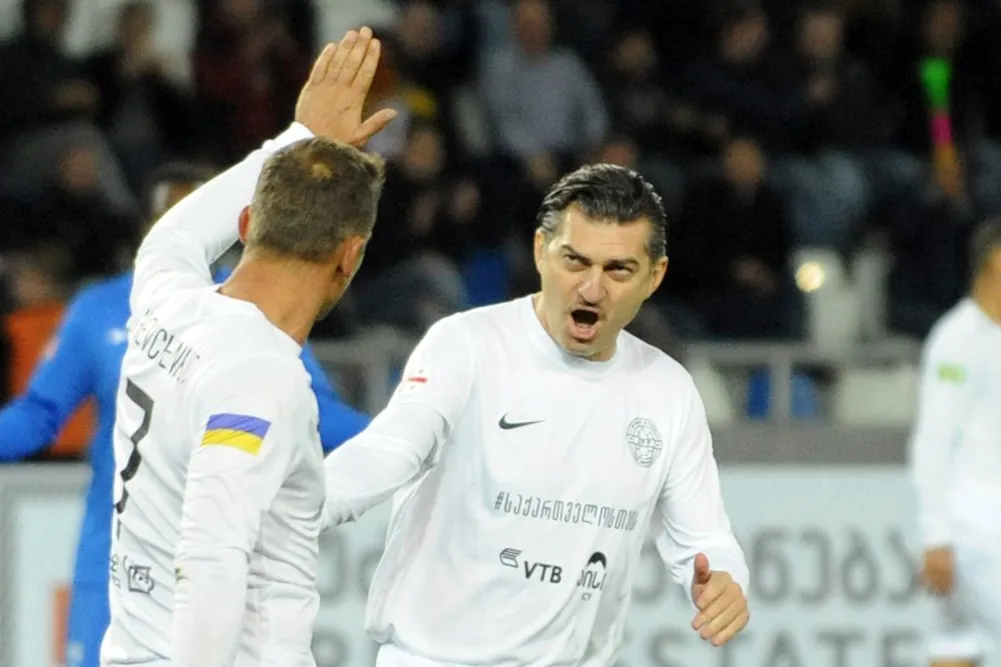 米赫伊尔·卡维拉什维利,右,2017年在一场慈善足球赛上。