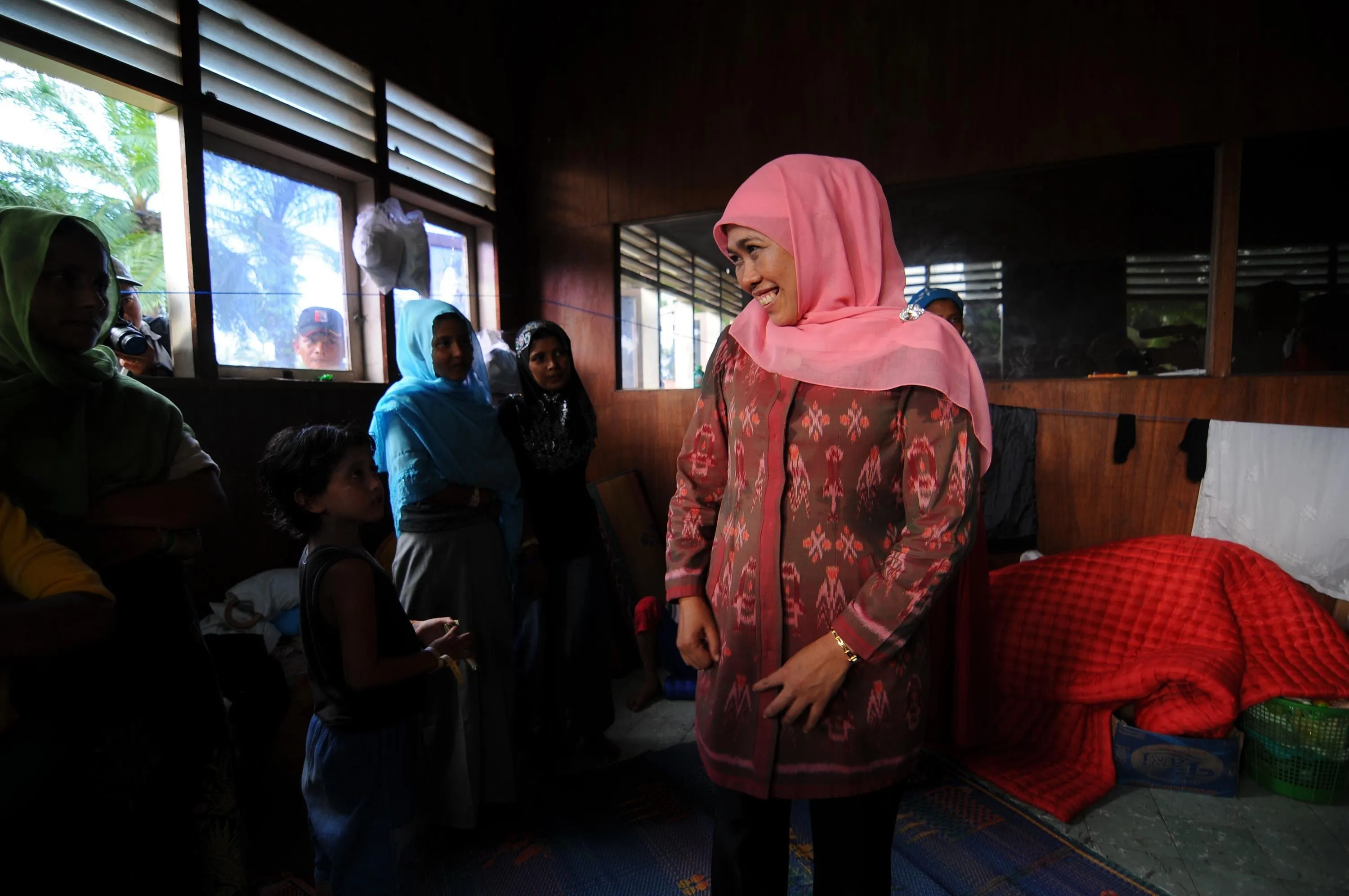 时任社会事务部长的Khofifah Indar Parawansa于2015年探访了罗兴亚和孟加拉国难民。