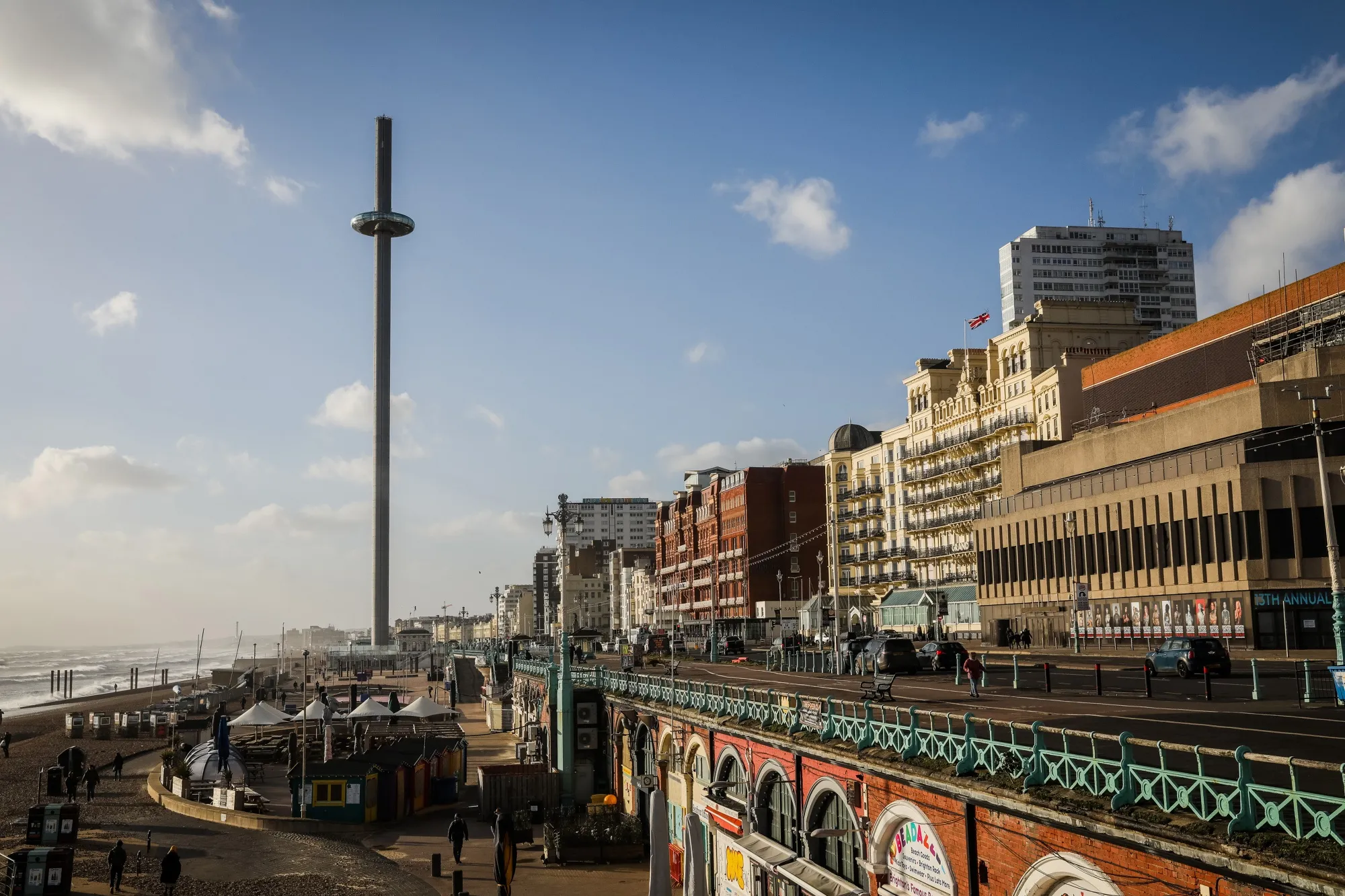 布莱顿i360观景塔高耸于城市天际线之上,2016年开业,游客可以在162米的高度俯瞰全国南海岸。游客还可以在胶囊顶部乘坐,随着其升降而体验。