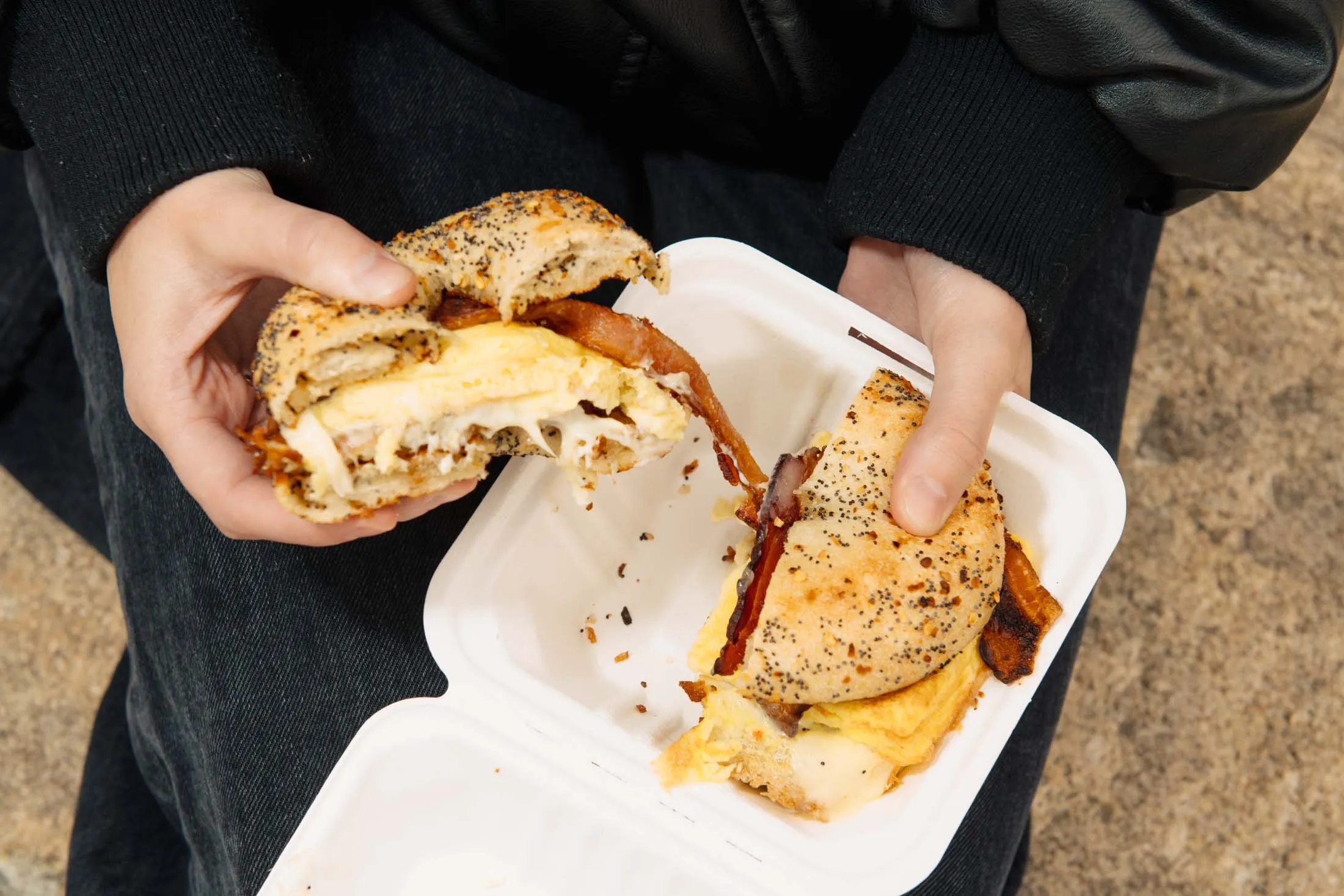 一款带有韩国口音的百吉饼三明治。摄影师:马修·克朗斯伯格