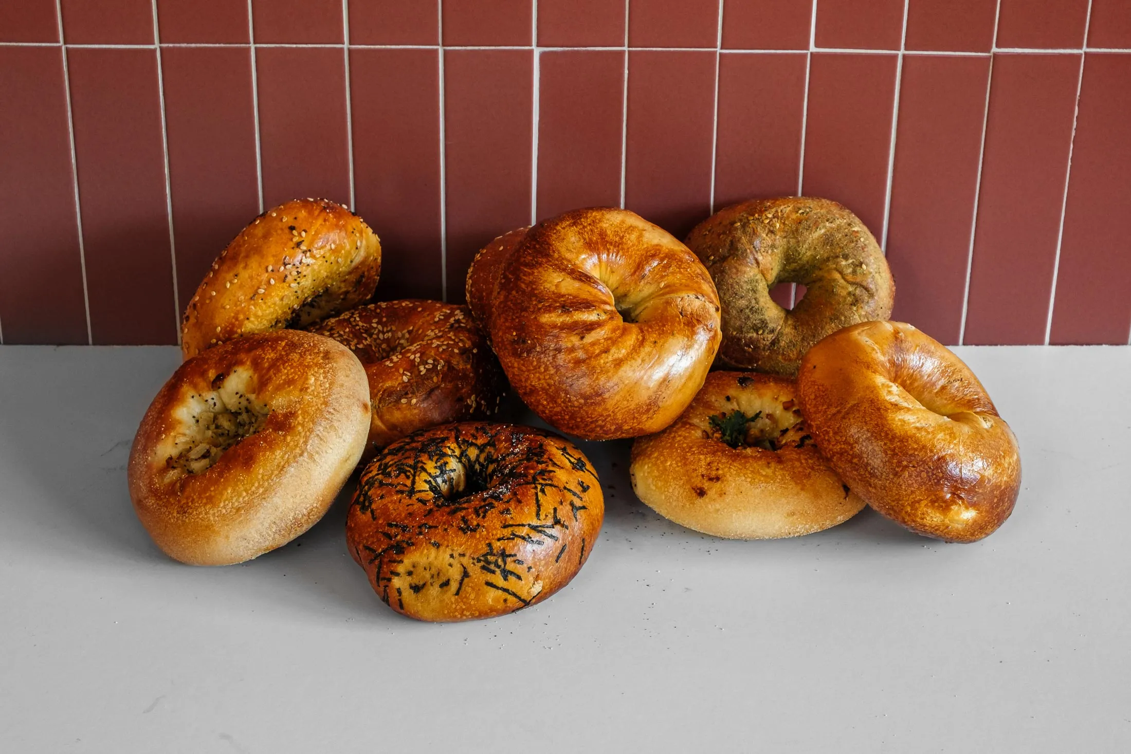 PopUp和阿波罗在某种程度上是贝果传统主义者;前者通常有六种口味,后者有三种。还有布鲁克林的 贝果联合,在公园坡和格林波因的两个农贸市场吸引了长队。(它计划在12月在格林波因开设一家实体店。)贝果联合的卷煮烘焙方法是正统的;它的口味往往不是。产品从经典的提升版——令人惊艳的3.50美元蛋贝果使用超浓郁的鸭蛋——到更意想不到的口味,如墨西哥摩尔、韩国辣椒酱和大蒜烤饼(后者用于其比亚利)。创始人威尔·萨克斯和兰蒂·侯反映说,他们的菜单反映了犹太侨民和纽约对贝果的多元文化接受。