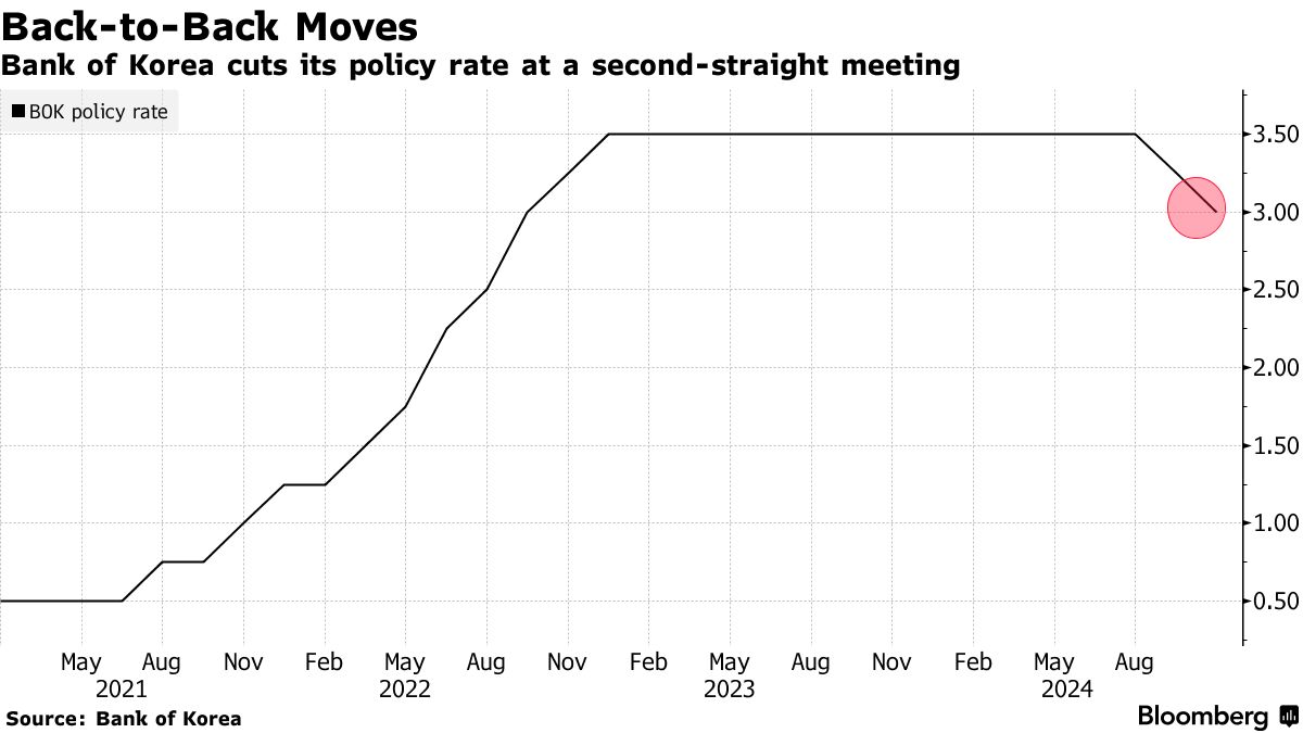 韩国银行意外降息,特朗普胜选增加贸易风险 - 彭博社