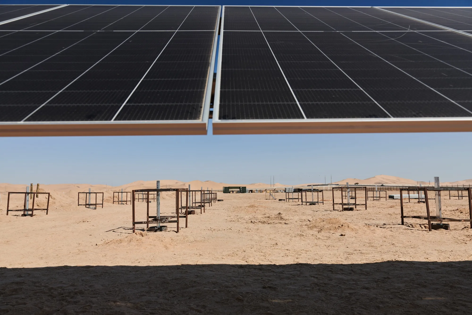 纳米比亚沃尔维斯湾外的太阳能电池板。