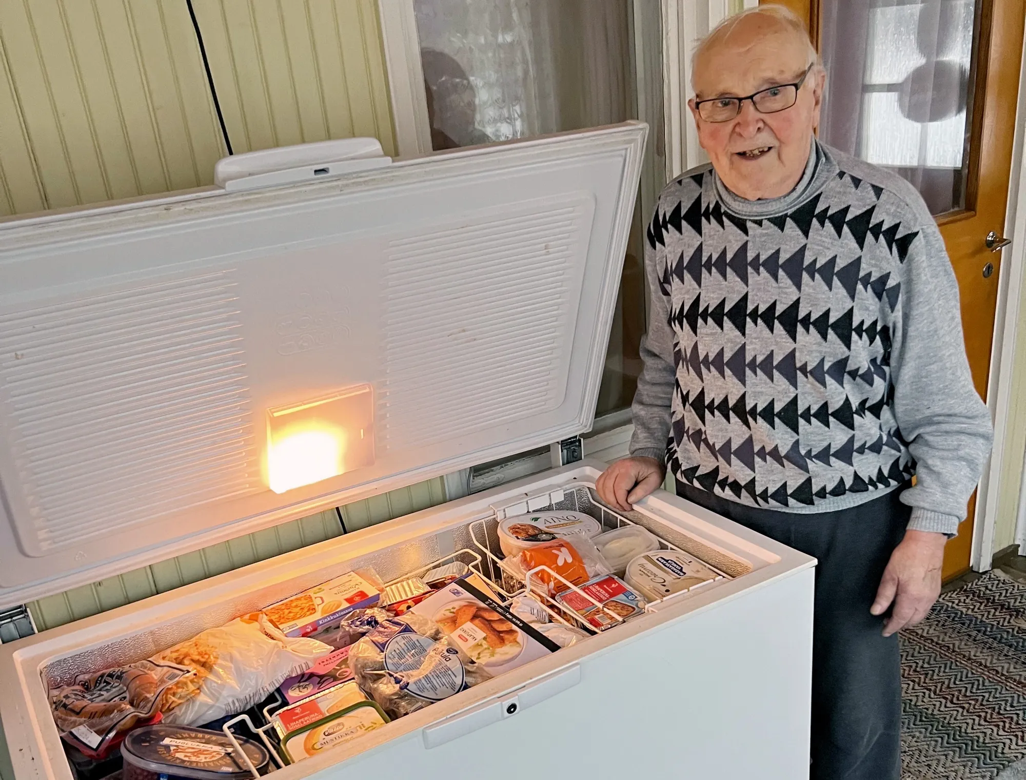 约尔马有两个装满食物的冰箱——包括可以保存几个月的黄油——厨房橱柜里有干货,并且在楼上储存糖。这些还有手电筒、电池、药物和一个燃气烧烤架等物品。胶带可以封住任何裂缝,以密封房屋。