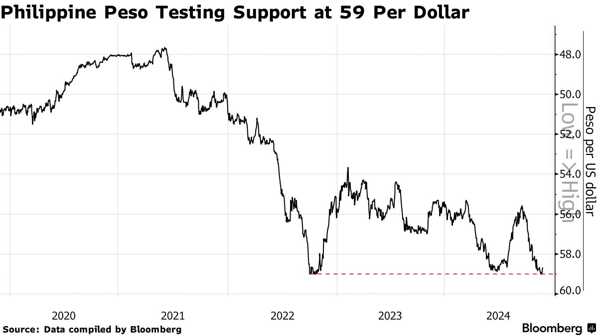 本月,由于唐纳德·特朗普的选举胜利使美元走强,投资者担心潜在的关税及其对贸易的影响,比索下跌。比索的下跌在每美元59的历史低点处受到限制,这一水平在过去两年中作为一个关键阈值,因为交易员评估菲律宾中央银行对弱势货币的容忍度。