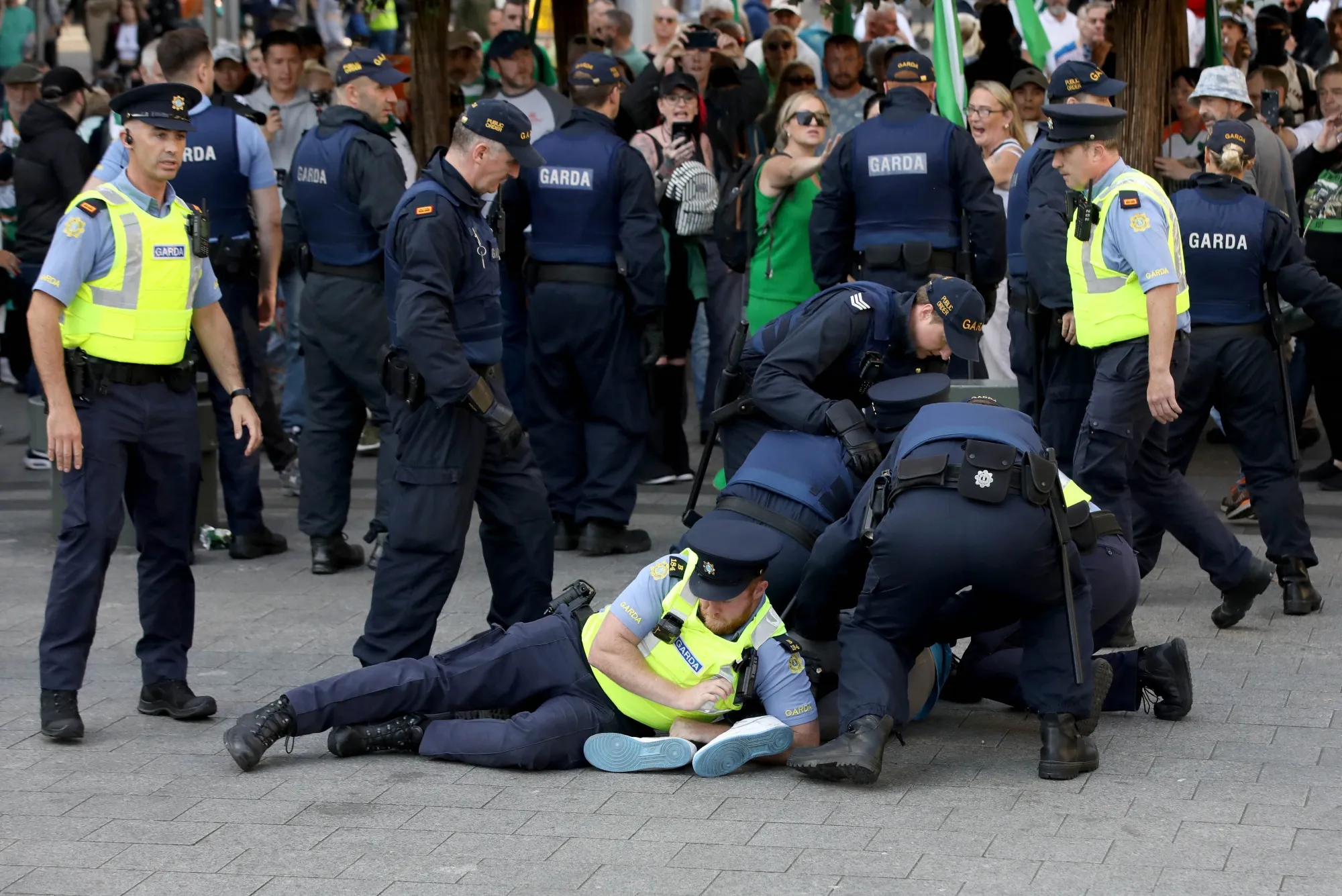 警方在九月份都柏林的一场反移民抗议中进行逮捕。摄影师:保罗·费斯/法新社/盖蒂图片社### 主要参与者是谁?