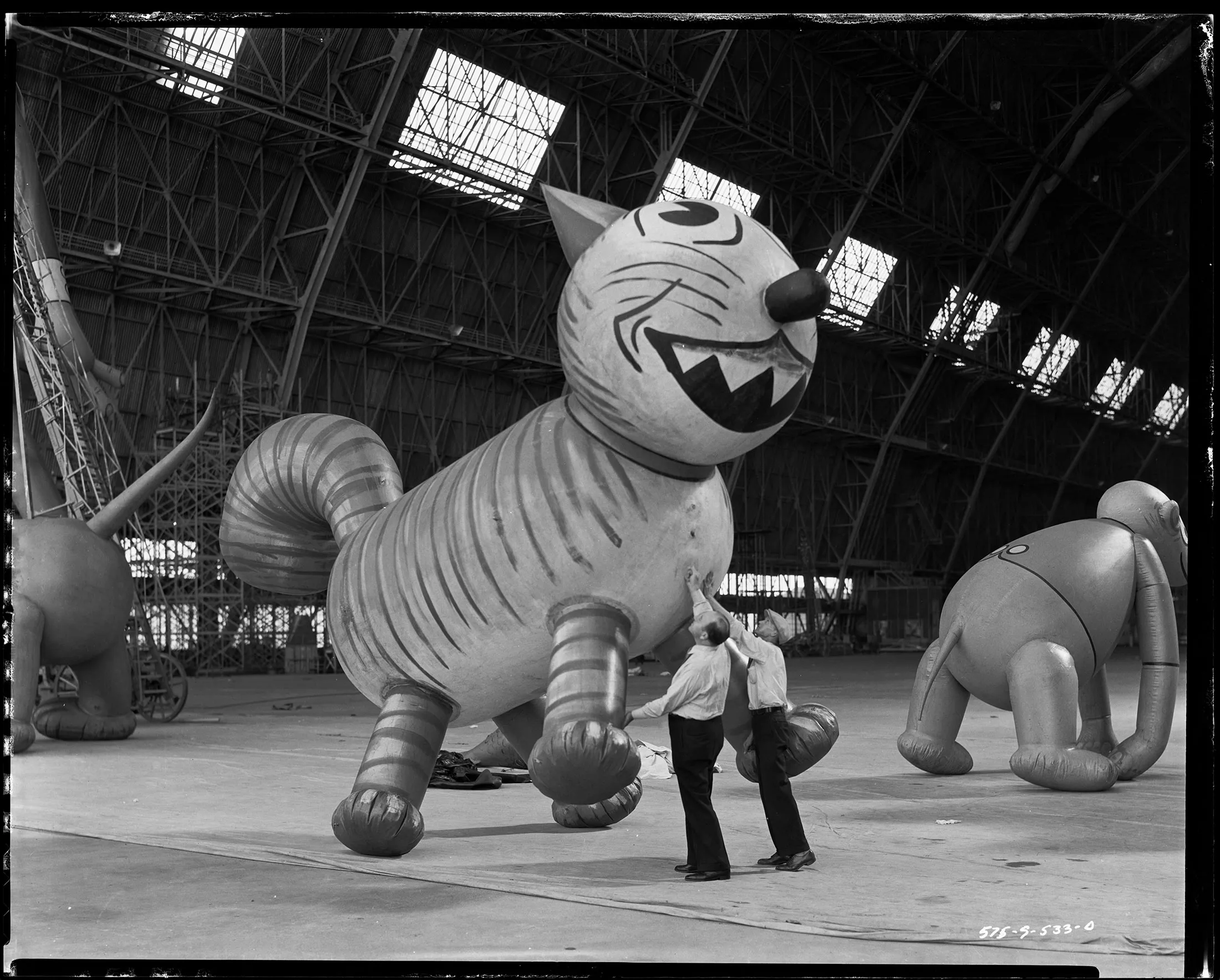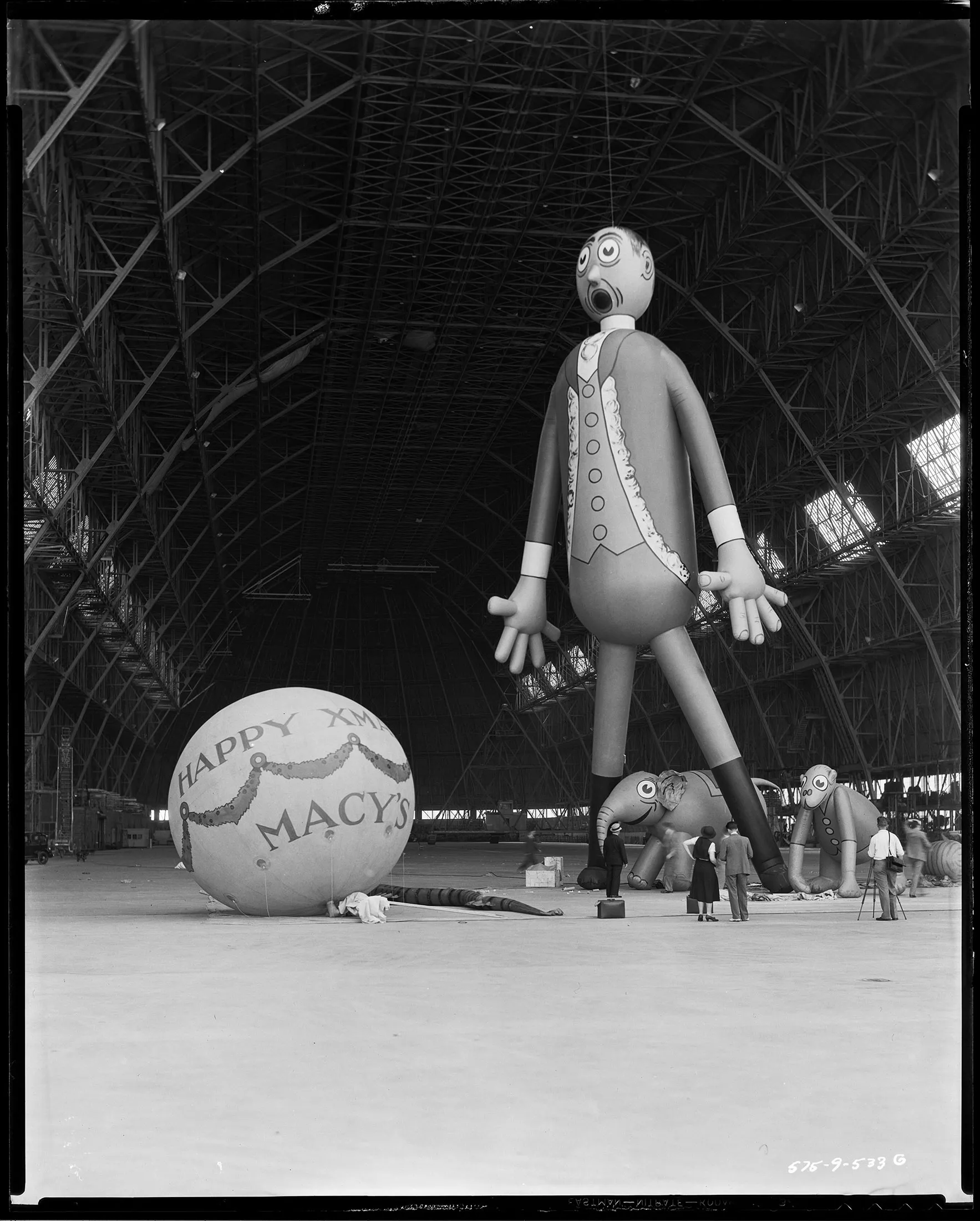 1933年由固特异轮胎和橡胶公司制作的梅西游行气球。摄影师:固特异轮胎和橡胶公司档案/档案与特别收藏/大学图书馆/阿克伦大学这些气球需要经过一段旅程才能到达纽约市。它们在俄亥俄州制造,并存放在阿克伦的Wingfoot湖机库,该机库仍然是固特异飞艇的运营中心,也是美国最古老的飞艇机库。