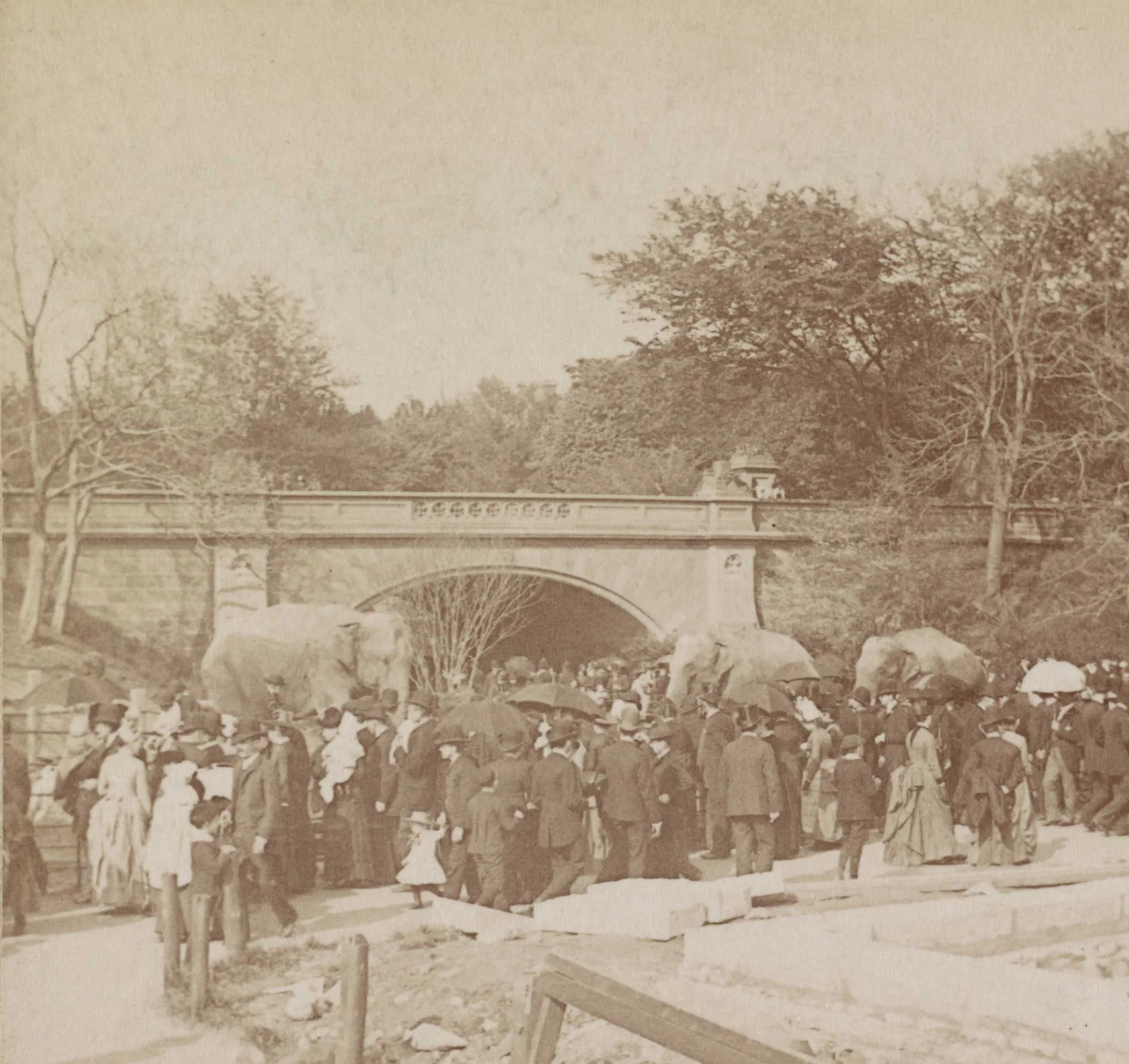 1896年中央公园动物园的大象。来源:国会图书馆游行中出现的动物包括通常居住在动物园的老虎、熊、骆驼和驴子。