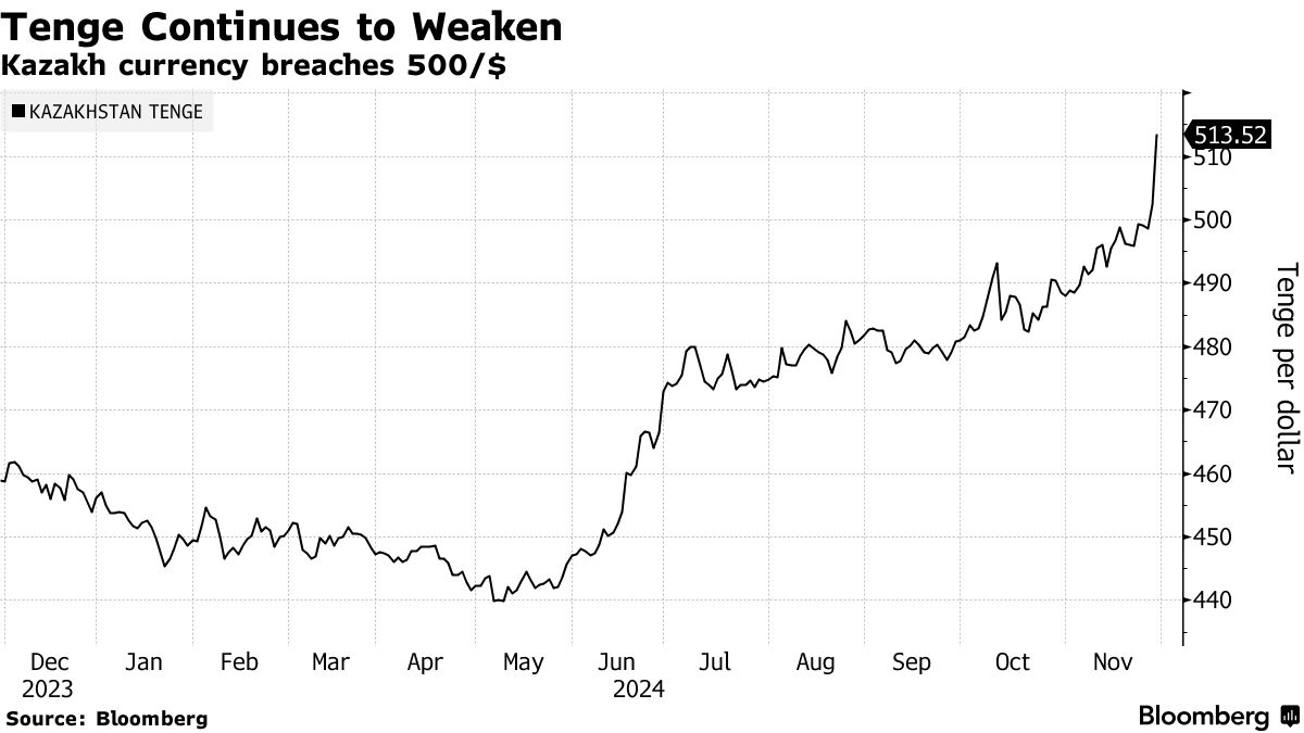 哈萨克斯坦中央银行还指出强势美元、油价波动以及对更多原油供应的预期和唐纳德·特朗普当选美国总统后的贸易关税前景。