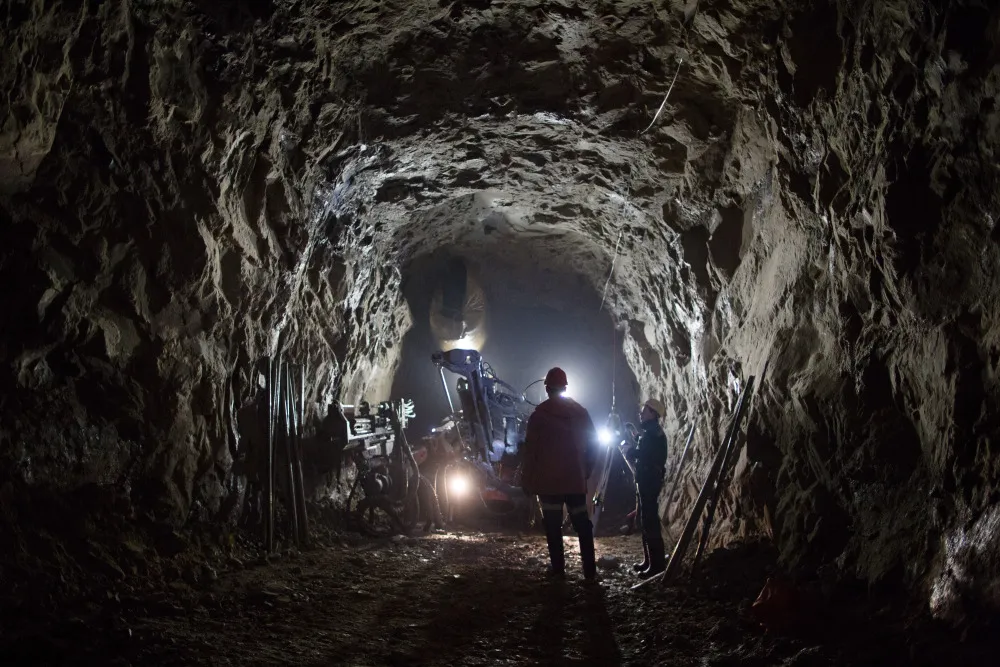 一名矿工站在阿尔罗萨地下钻石矿内。
