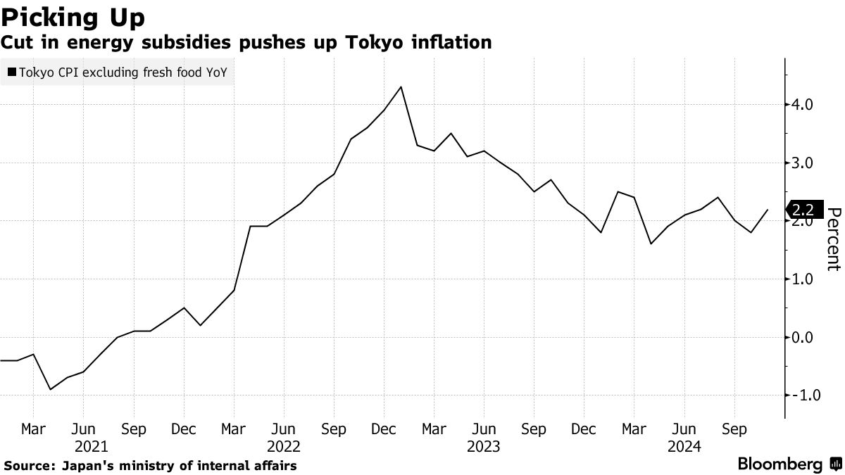 东京通胀加速超过2%,政府减少能源补贴 - 彭博社