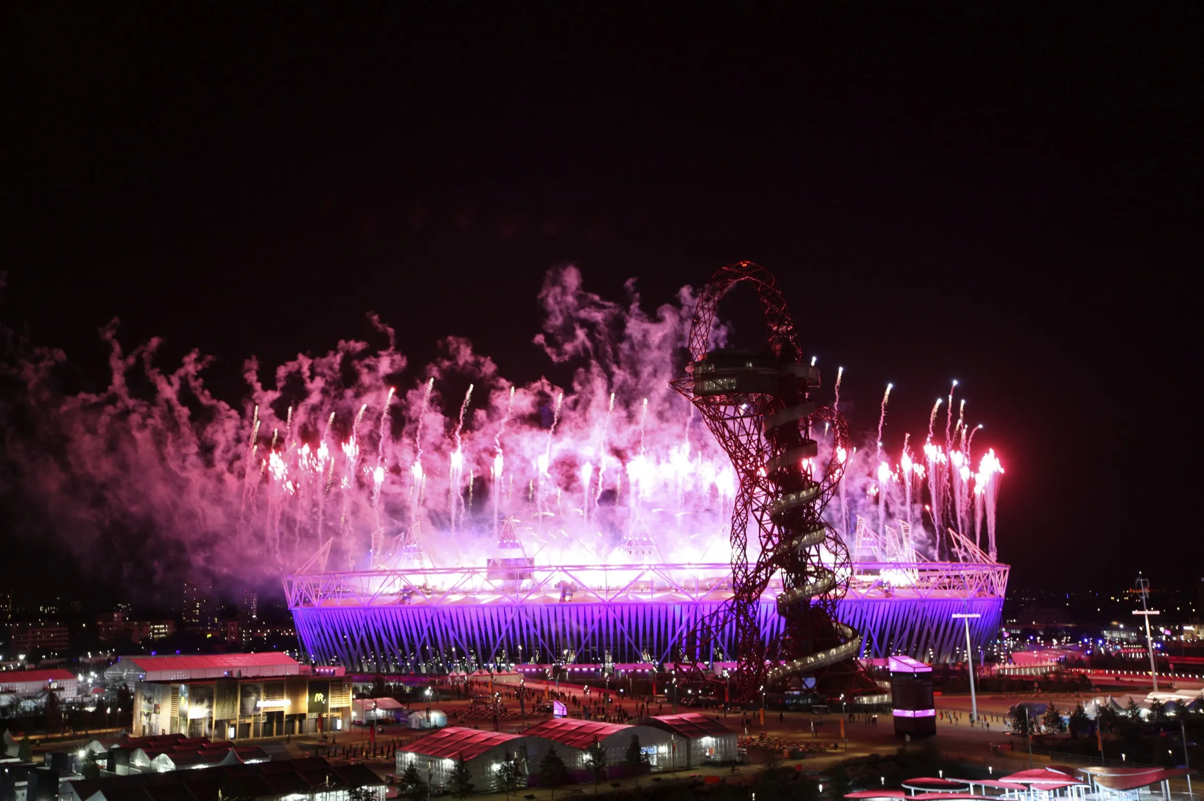 2012年伦敦奥林匹克公园的开幕式,2012年。摄影师:克里斯·拉特克利夫[昨天的答案: 萨里郡的埃尔姆布里奇是根据哈利法克斯在英国购买房屋最昂贵的地方。]