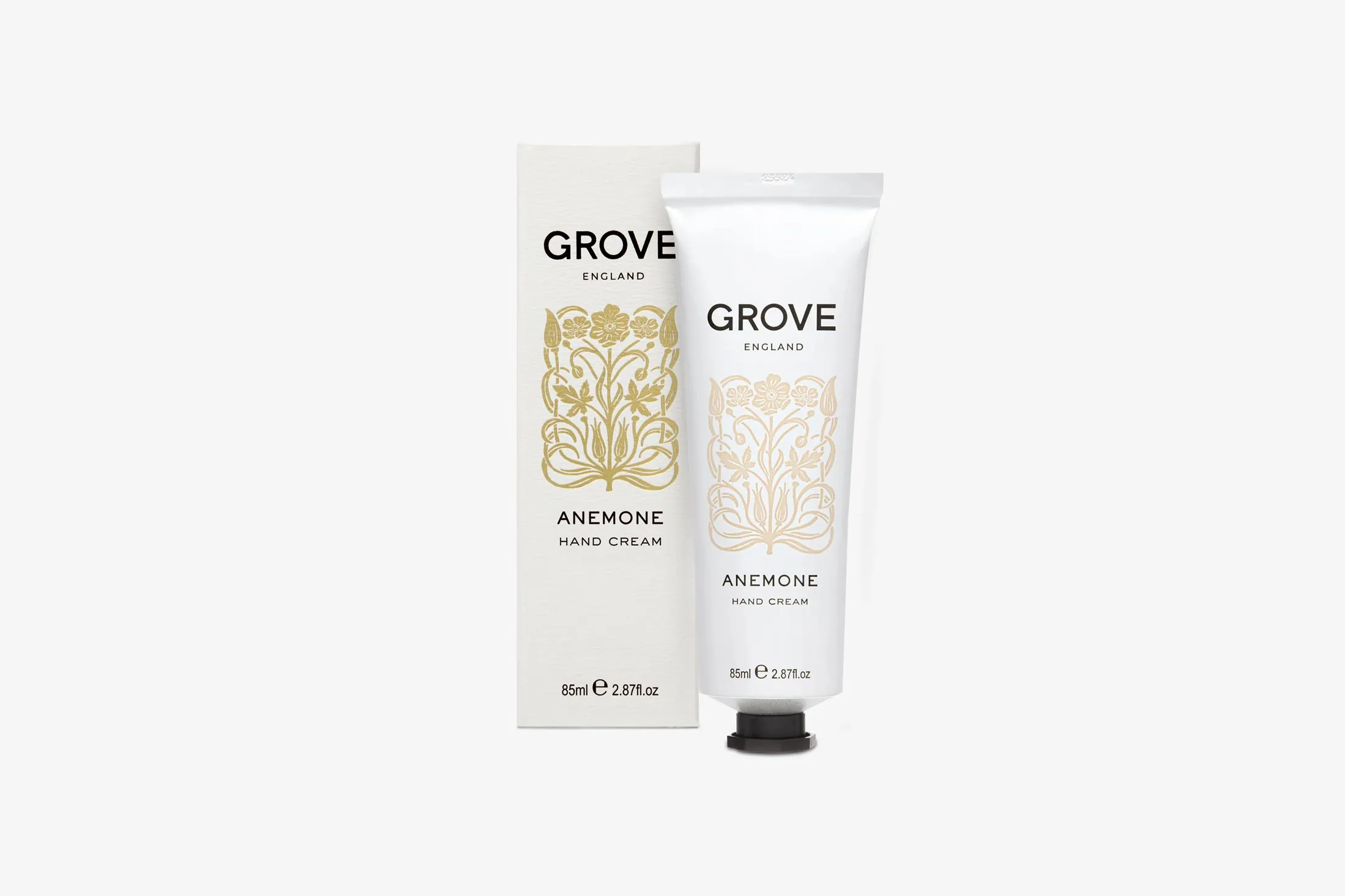 格罗夫英格兰护手霜。来源:供应商格罗夫英格兰护手霜格罗夫英格兰是来自科茨沃尔德的室内设计师劳拉·巴特勒-马登的新品牌。她的设计理念是创造宁静的空间,这种理念延伸到了香气和护肤品,采用天然植物成分制作。第一系列灵感来自于银莲花,传统上是英国家庭花园中最后盛开的花朵。£35,85毫升管