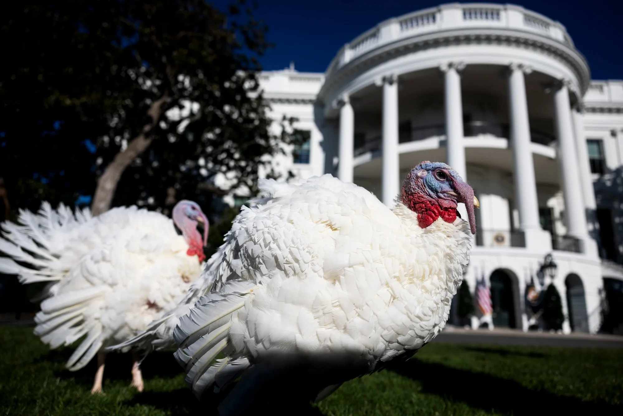 桃子和花朵,2024年国家感恩节火鸡,在周一白宫接受总统赦免之前。摄影师:Tierney L. Cross/Bloomberg显然,让人们改变饮食并不容易。