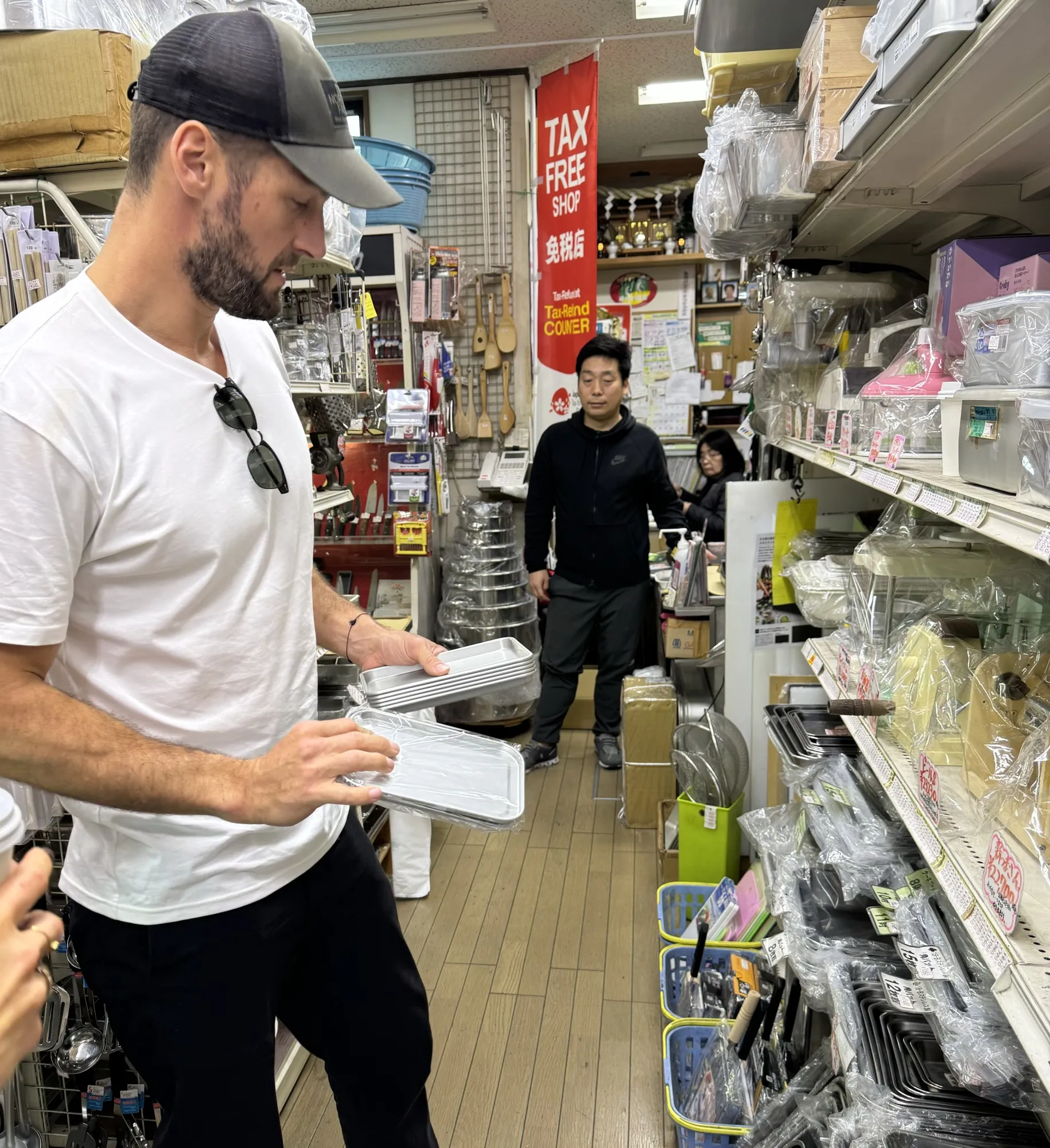 我这周在日本,试图弄清楚要探索什么时,戴维·卡特联系了我。他在伦敦拥有几家餐厅,包括位于肖尔迪奇的Manteca,专门提供意大利面和烤肉,以及新开业的位于博罗市场的希腊酒馆Agora。他也在东京,前往“厨师的迪士尼乐园”,去采购一种他在其他地方无法找到的特定尺寸的金属托盘。那就是位于浅草的合羽桥街,这里有超过120家商店,是该市估计有16万家餐厅的厨房设备宝库。在过去的几年里,来自日本以外的厨师们也纷纷涌向这里,使其成为全球烹饪行业的一个圣地。