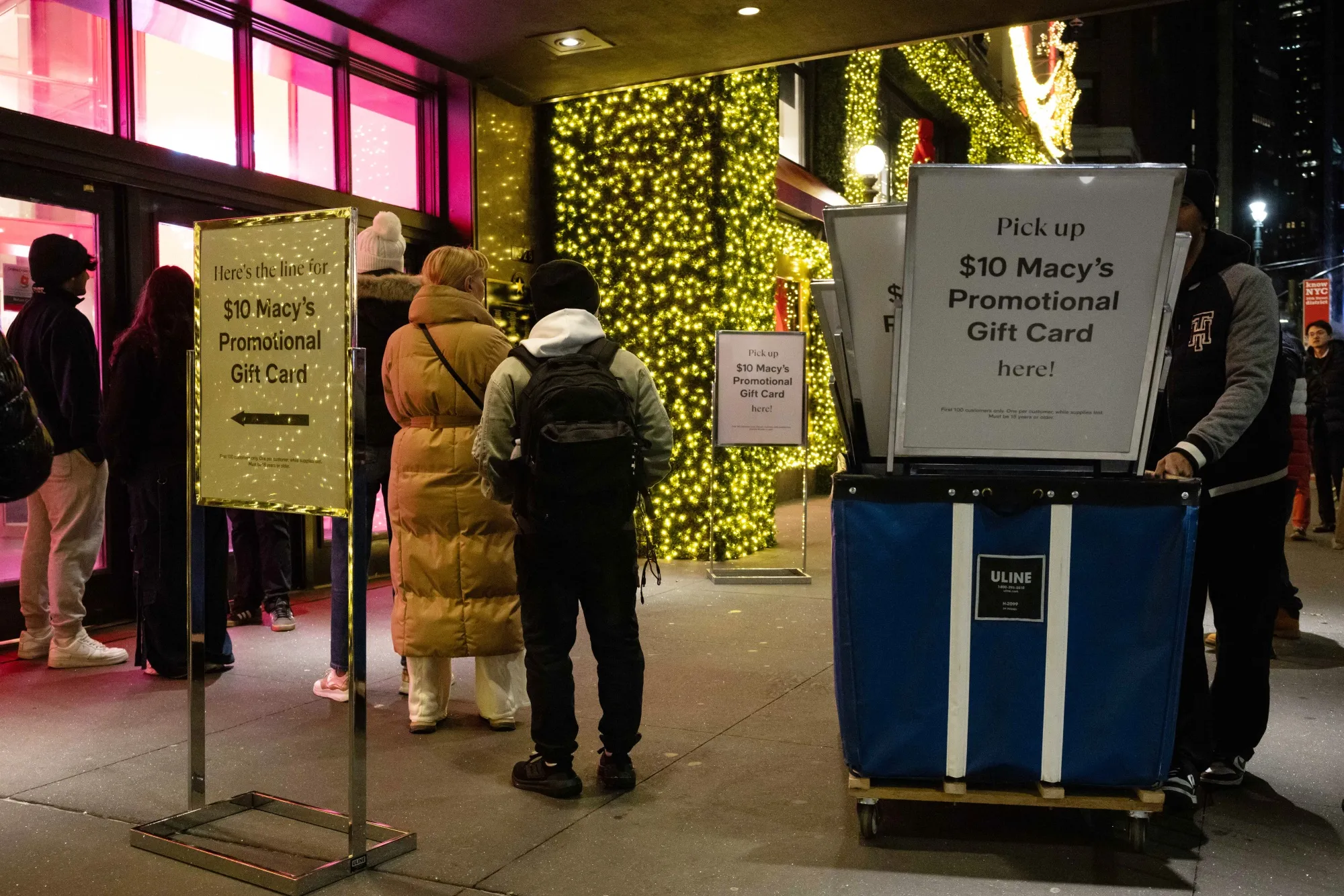 在马里兰州贝塞斯达的一家梅西百货,工作人员在开门两个半小时后仍在发放10美元的礼品卡。这个促销活动本应仅限于前100名顾客,但一名员工表示他们决定发放更多。