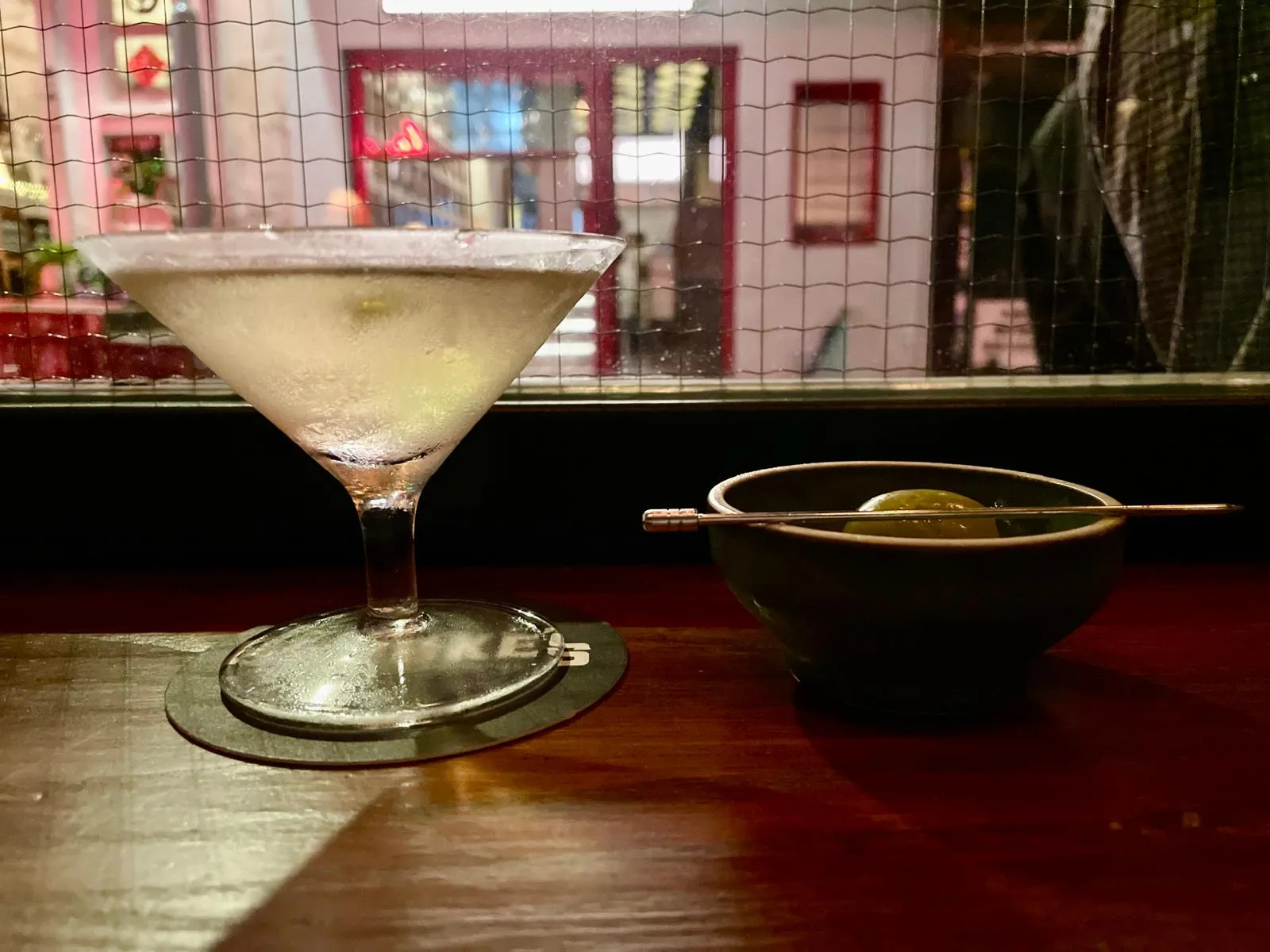 我们的账单总共是754港元(包括10%的服务费)。饮料方面,我们点了一杯Bourke’s Martini(120港元)——非常棒——一杯生啤(85港元)和一瓶气泡水(35港元)。我们也点了一些食物,味道相当不错,但我们会再提到这一点。