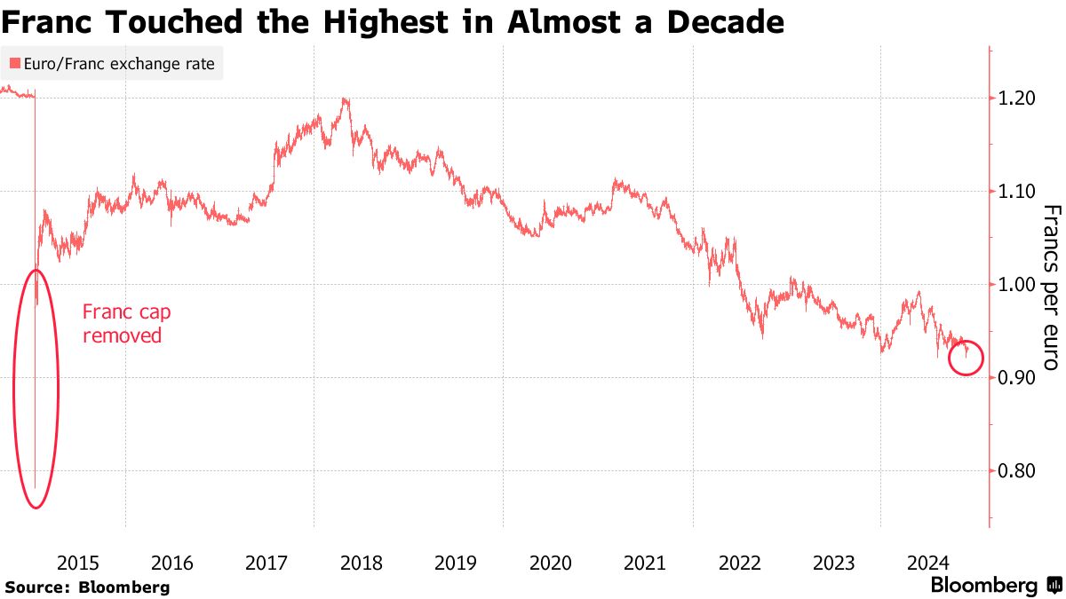这些见解可能帮助瑞士国家银行更有信心地容忍一种货币的强势,而这种货币的避险地位使其在地缘政治动荡加剧的情况下仍然受到需求。在过去一年中,瑞士法郎对美元和欧元的汇率达到了自2015年初以来的最高水平。