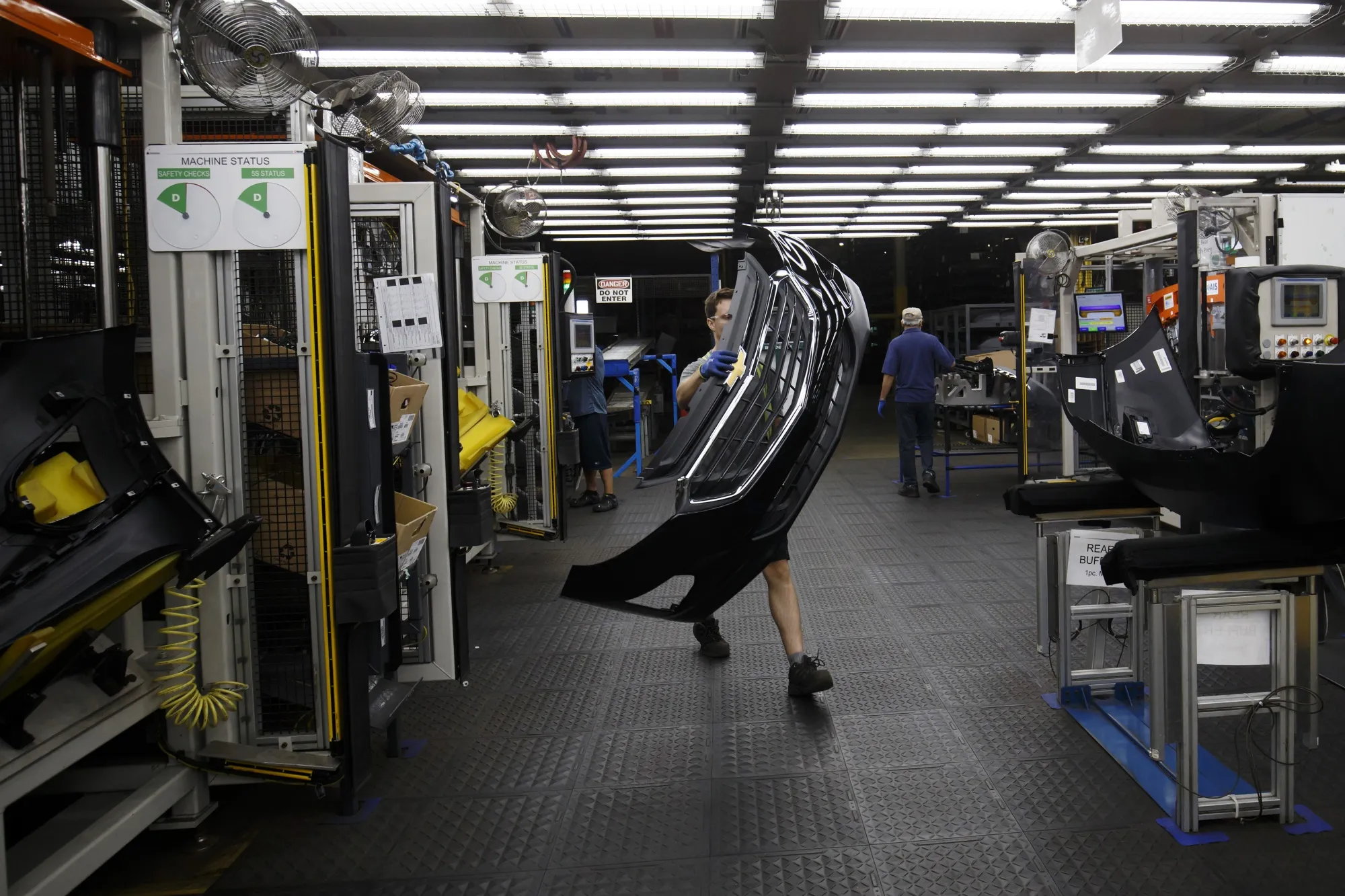 一名员工在加拿大安大略省圭尔夫的马格纳国际公司Polycon Industries汽车零部件制造厂搬运通用汽车公司(GM)雪佛兰的保险杠。摄影师:Cole Burston/Bloomberg“国会将会有担忧,”曾在特朗普的第一届国家安全委员会担任国际经济政策顾问的Everett Eissenstat在最近的华盛顿网络研讨会上表示,他在此之前还在参议院财政委员会从事贸易工作多年。“但与此同时,特朗普总统并没有在关税问题上隐瞒事实。他说他会这样做,并且以强大的授权连任。”