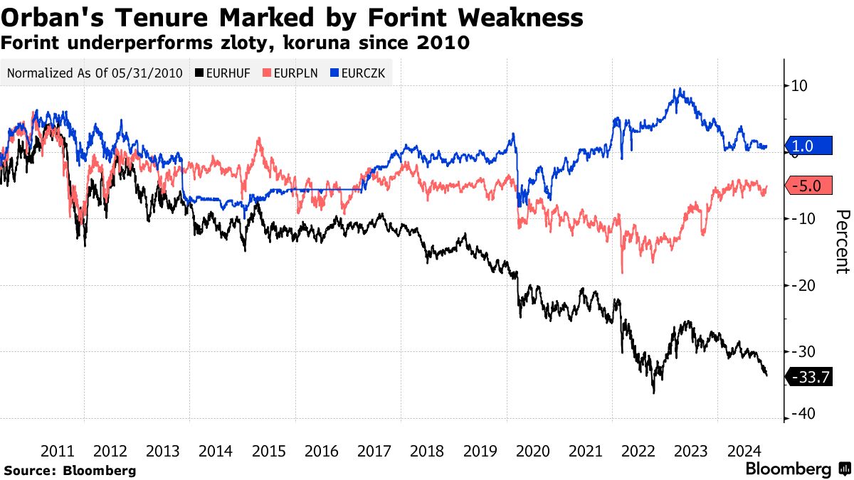 由于不利的全球情绪使投资者关注该国的金融脆弱性,匈牙利的货币今年对欧元贬值超过7%。这迫使中央银行停止货币宽松,并将其关键利率维持在6.5%,与罗马尼亚并列为欧盟最高的借贷成本。