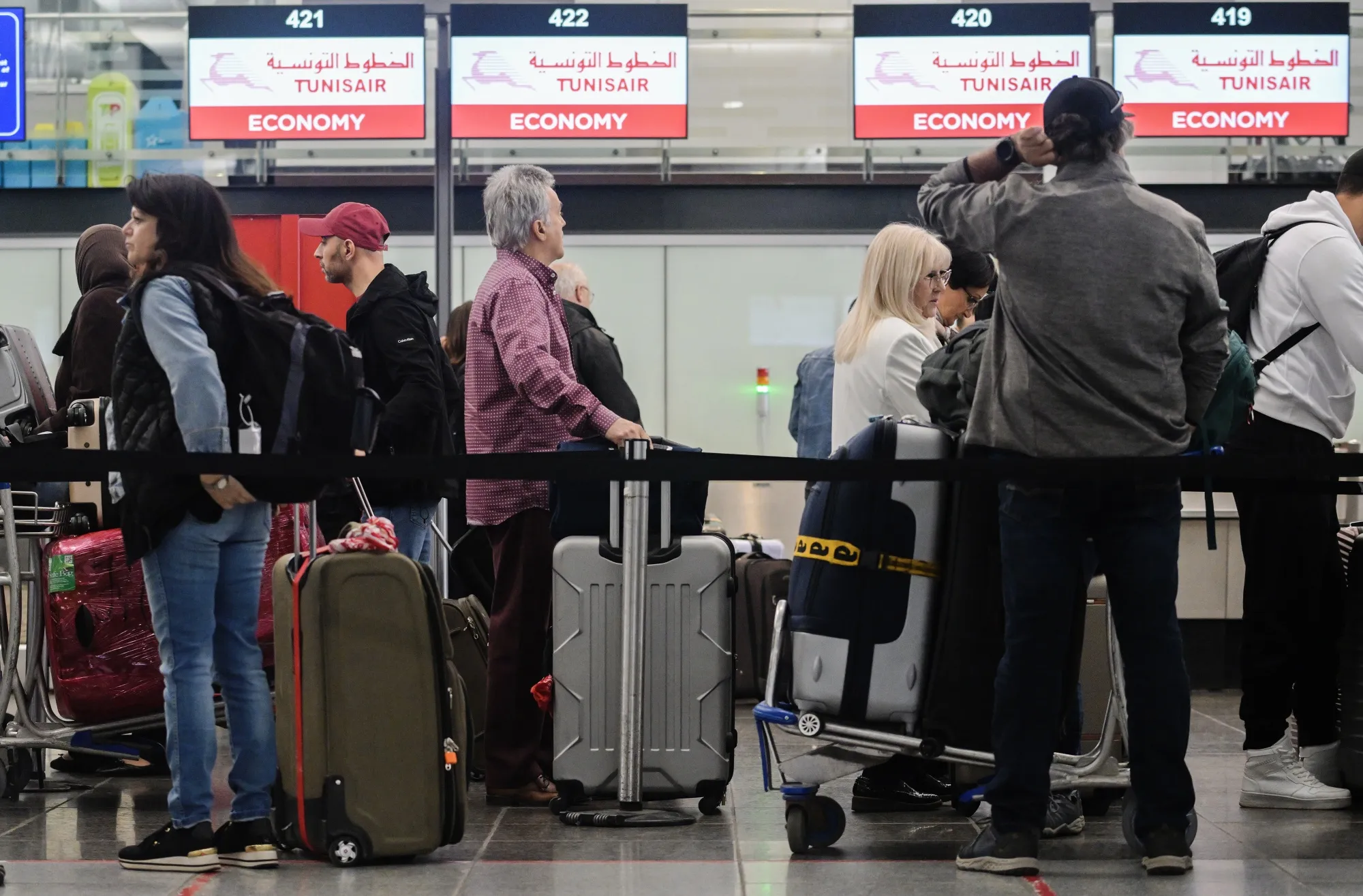在加拿大魁北克省蒙特利尔的蒙特利尔-皮埃尔·埃利奥特·特鲁多国际机场,突尼斯航空的值机柜台前的旅客。摄影师:格雷厄姆·休斯/彭博社应避免的航空公司。 突尼斯航空是 2024年延误和投诉 最多的航空公司,根据AirHelp的报告。仅根据客户意见,它与瑞安航空和爱尔兰航空一起被列为最差航空公司。至于最佳综合航空公司,布鲁塞尔航空和卡塔尔航空占据了前两名。