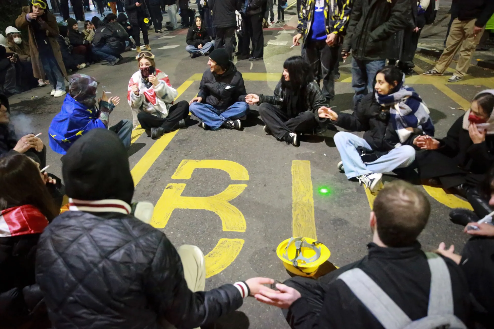 抗议者在12月3日的第比利斯示威中手拉手坐在街上。摄影师:祖拉布·采尔茨瓦泽/AP照片女性处于中心位置,人们带着他们的狗和孩子。抗议者与流浪动物一起睡觉,而餐馆和咖啡馆则提供从比萨饼到传统的哈恰普里等各种食物来维持他们的生计。由于学生和教育工作者连续几天在城市中游行,几所学校暂时停课。