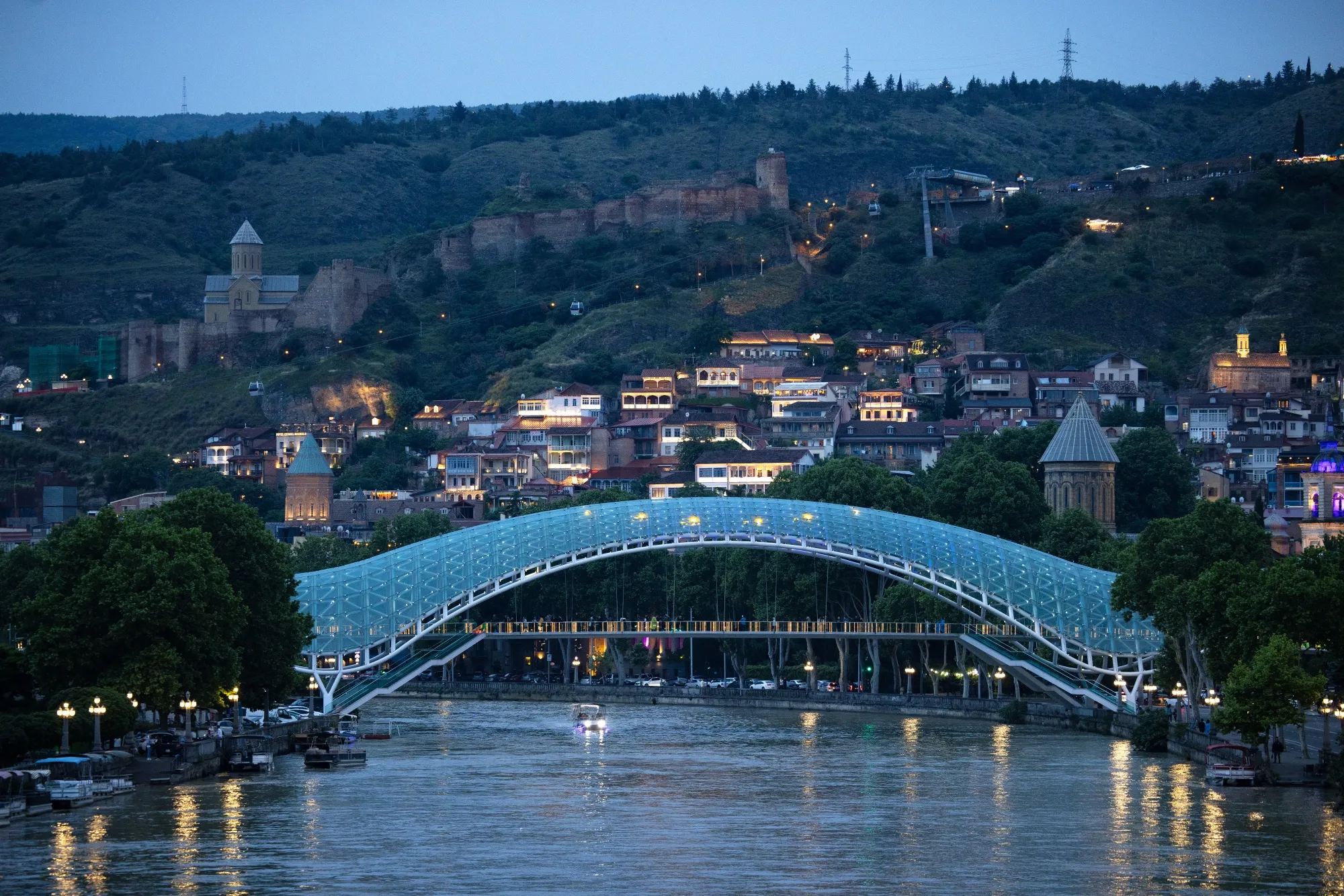 2010年在第比利斯开通的和平桥横跨库拉河。摄影师:安德烈·鲁达科夫/彭博社马库莎·巴赫塔泽,一位专注于制作珠宝的50多岁艺术家,支持政府,并表示她希望避免变得像乌克兰。她说反对派会带来混乱。“最终,我们有一个像政治家一样思考的政府,”她说。“我不害怕,我们捍卫我们的权利和传统,我有非常体面的健康保险。”