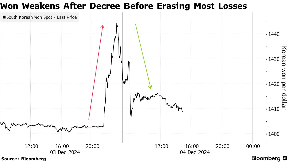 韩国总统尹锡悦令全国、立法者和投资者感到震惊,宣布军事统治,他认为此举将阻止反对派瘫痪他的政府。该法令在数小时内被撤回,但影响仍在持续。主要反对党周三表示将寻求弹劾总统叛国。
