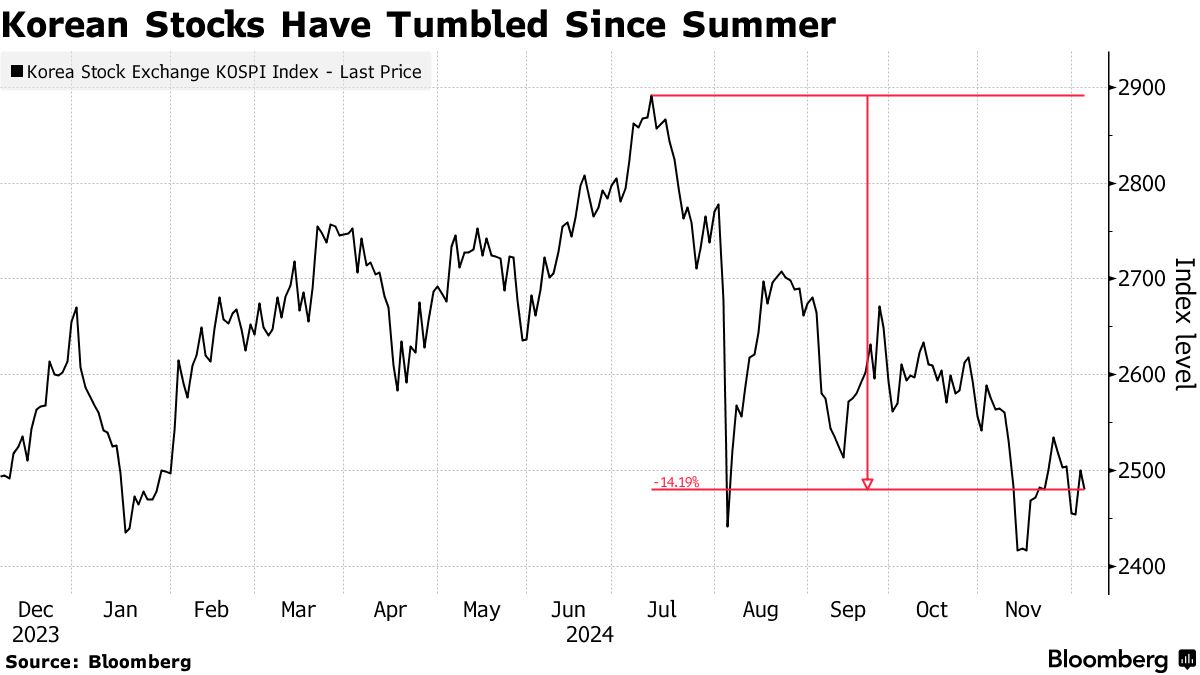 韩国日益紧张的政治局势是投资者在已经受到美国当选总统唐纳德·特朗普关税威胁影响的地区中最不需要的事情。这些事态发展可能导致资金重新审视亚洲其他地区的风险溢价,尤其是考虑到韩国被认为相对免受此类干扰。