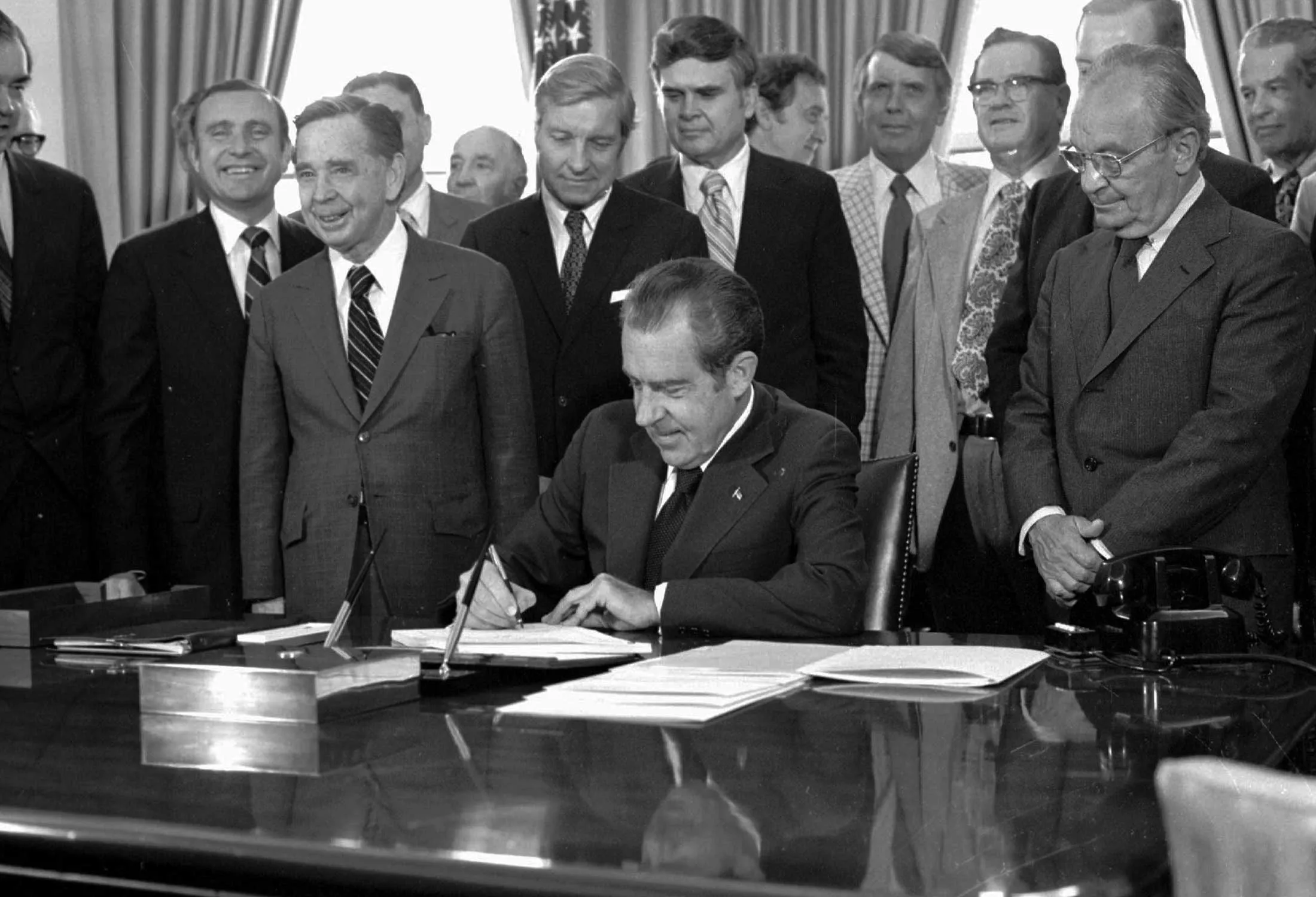 总统理查德·尼克松于1974年7月12日签署了一项法案,赋予国会对预算过程的更严格控制。摄影师:美联社照片作为对这一骚乱的回应,国会在1974年通过了《扣押控制法》,以重新确认其对支出的权力。虽然它为总统设立了一个快速通道,以便在他想要推翻国会的支出决定时迅速寻求国会的批准,但它也建立了一个机制,使得美国审计长,他向国会提供建议,可以因未经授权的扣押而起诉总统。