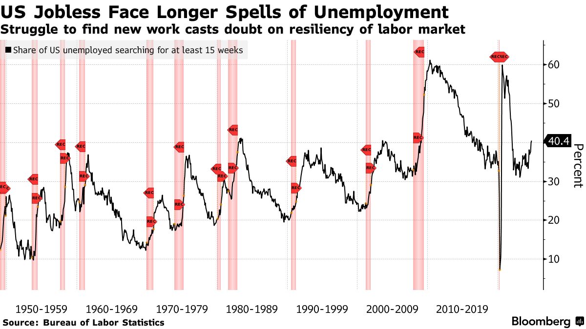 美国失业者在劳动力市场找工作的时间更长 - 彭博社