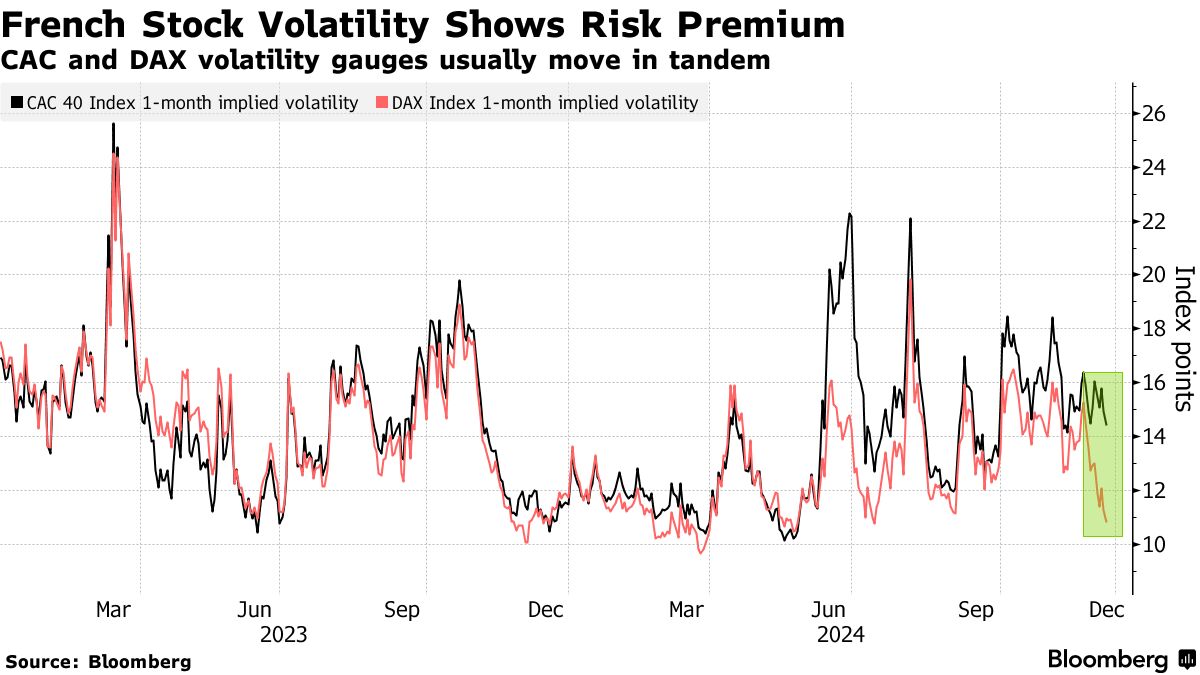 自从总统埃马纽埃尔·马克龙在六月意外宣布提前选举以来,法国的CAC 40指数在很大程度上表现不佳,落后于其欧洲同行。2024年,法国蓝筹股下跌了3.5%,而泛欧斯托克600指数上涨了约7.9%。