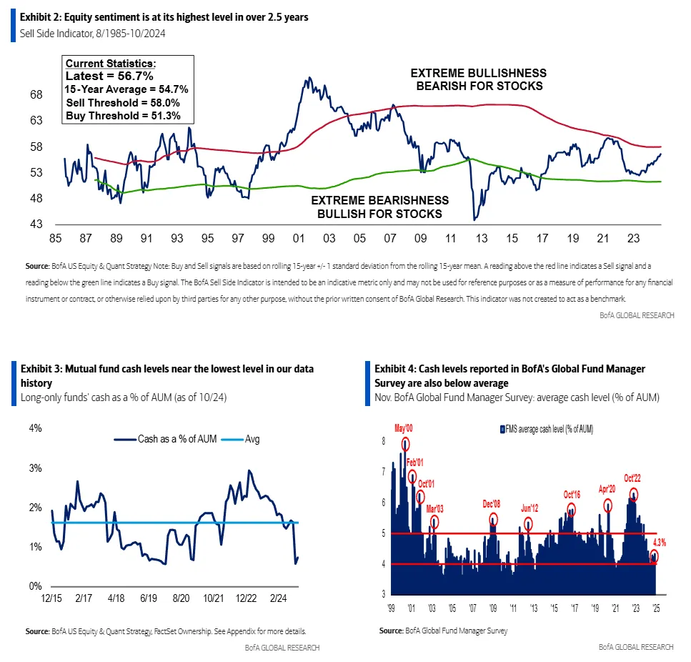 不过让我感到震惊的是美国银行的预测(该预测是在11月底撰写的)对当前情绪的评估。正如由萨维塔·苏布拉马尼安领导的团队所说,“熊市正在灭绝。”更重要的是,几乎在你看到的每个地方都有狂热的迹象。