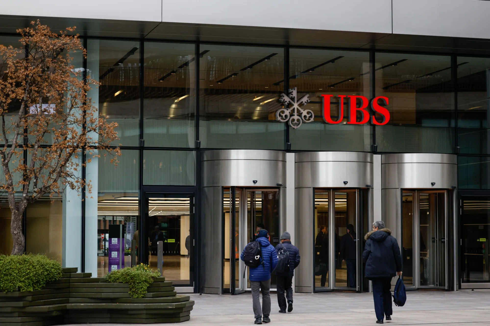 在伦敦的瑞银集团办公室的入口。