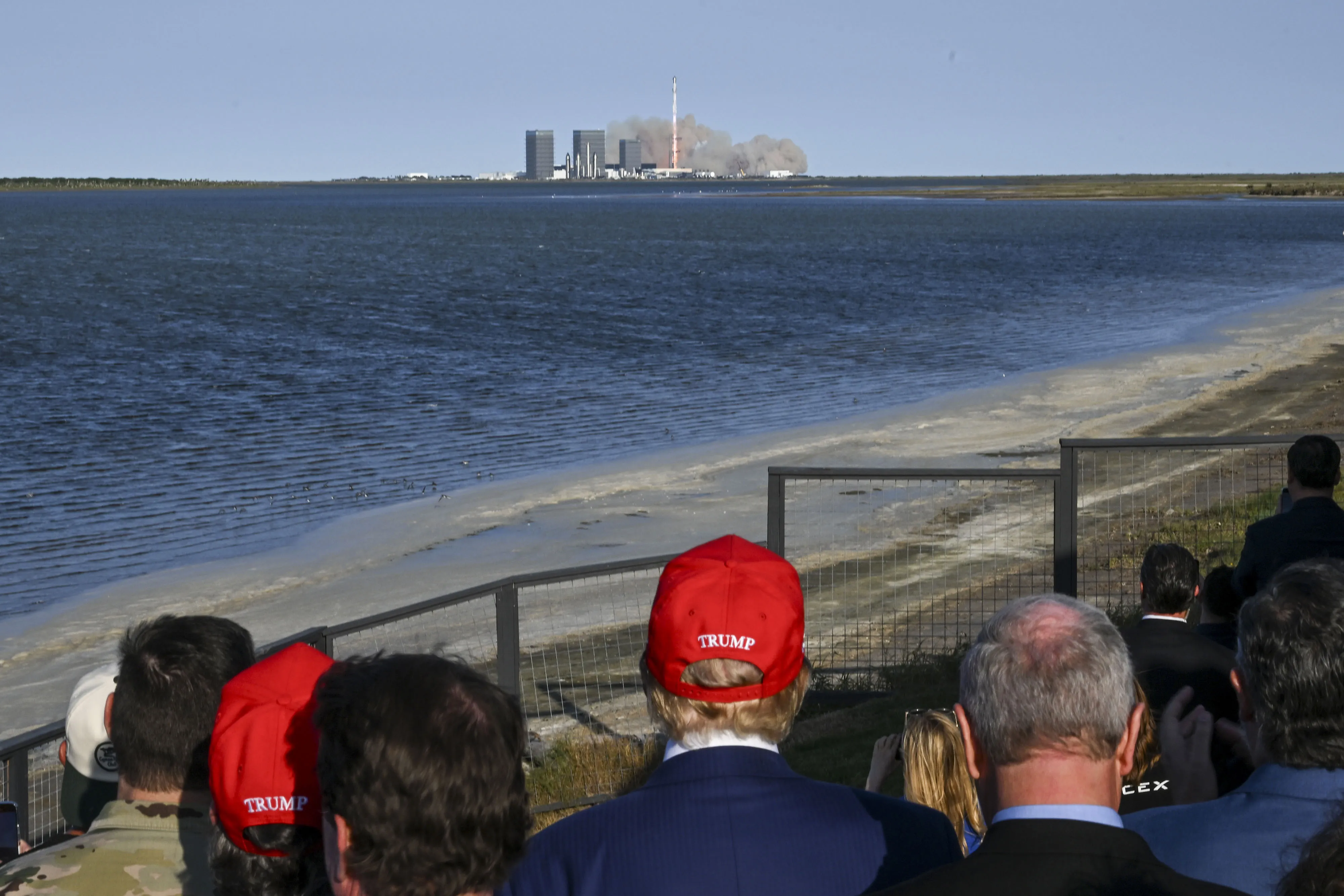 唐纳德·特朗普和埃隆·马斯克在上个月德克萨斯州的SpaceX星舰发射前。