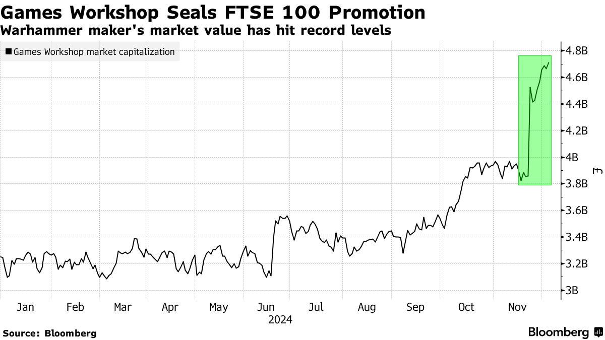 《战锤制造商晋升至FTSE 100指数,零售商退出 - 彭博社》