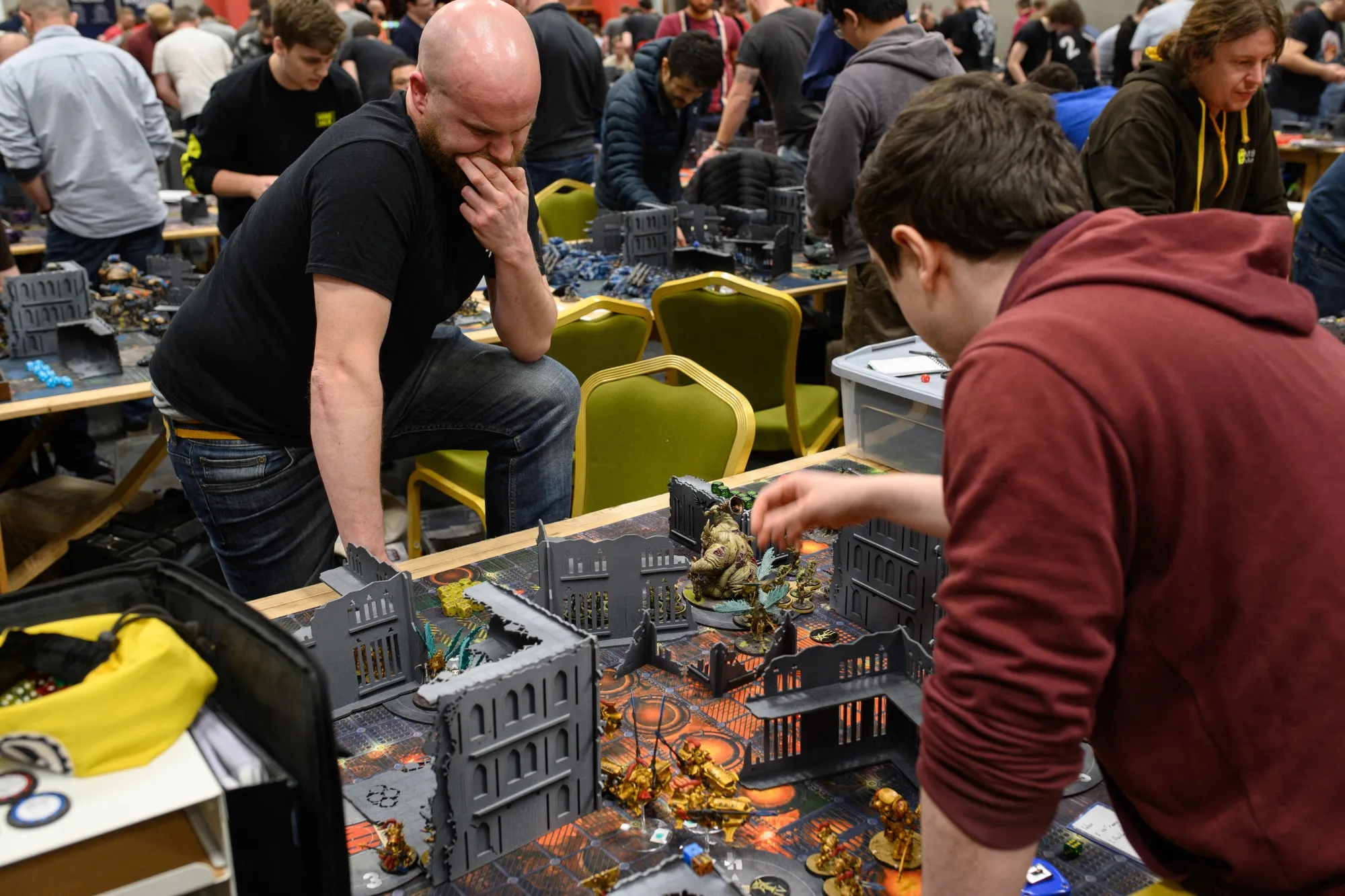 玩家在英国北安普顿参加一场战锤团队锦标赛。