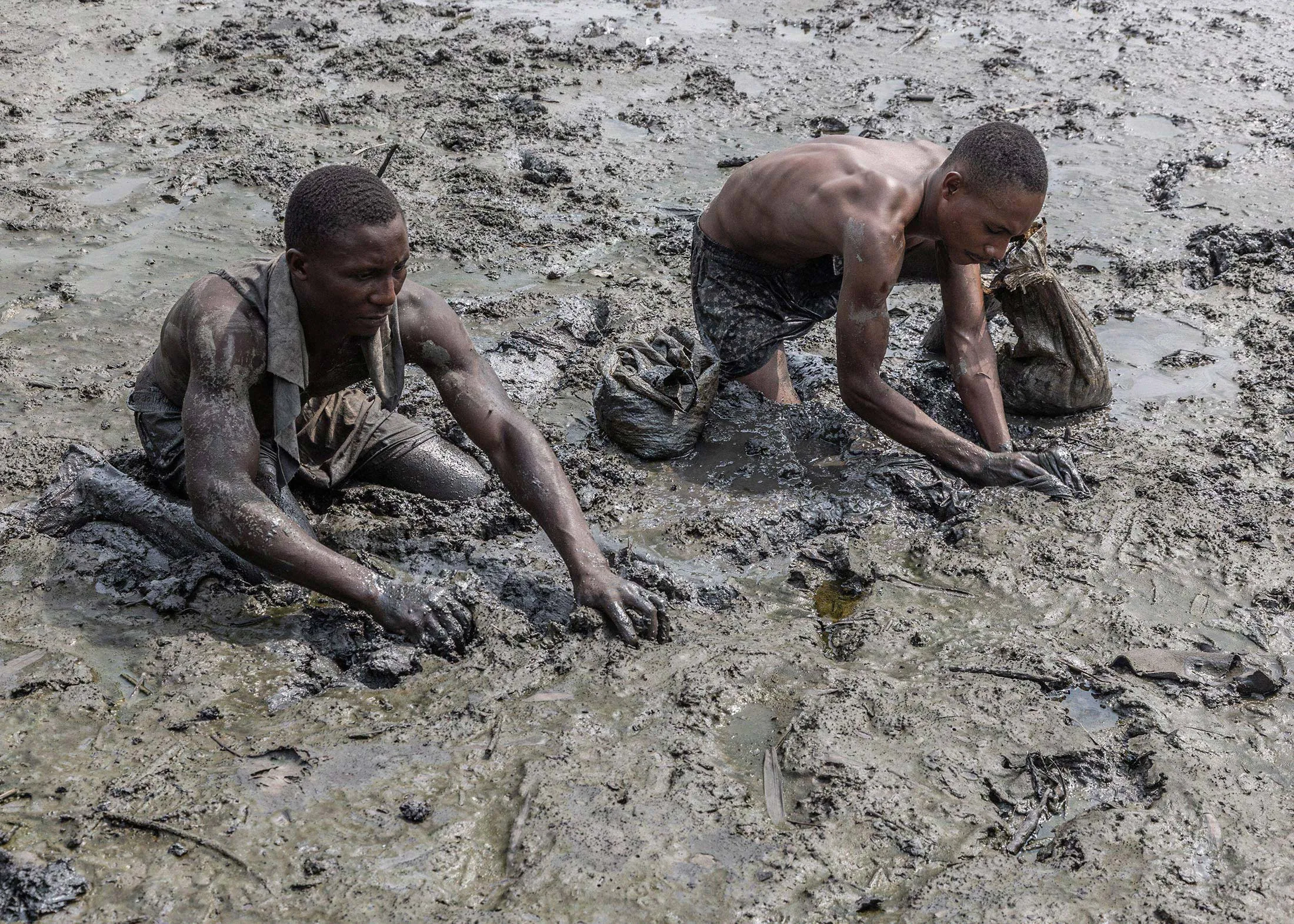 在尼日尔三角洲油污淤泥中捕蟹。摄影师:萨达克·苏伊西/Le Pictorium/MAXPPP/Alamy在更好的时光里,维尔-勒·阿格巴洛每天都在家族的小农场工作——除草、浇水或收获他的木薯。但在过去一年多的时间里,他几乎没有收获,因为他的田地被厚厚的黑色原油覆盖。