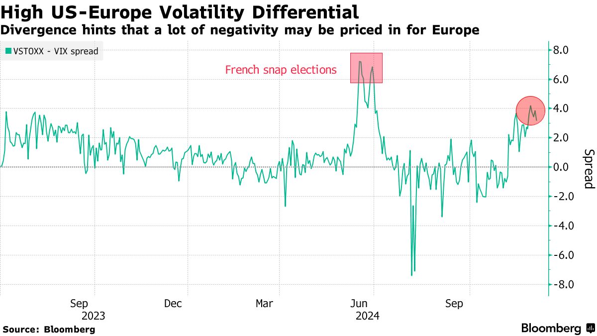 在9月份创下历史新高后,欧洲股市一直落后于美国同行,因对潜在美国关税、地区经济疲软和地缘政治风险的担忧不断加剧。法国的政治动荡加重了投资者的忧虑,政府在2025年预算上无法找到共同点。