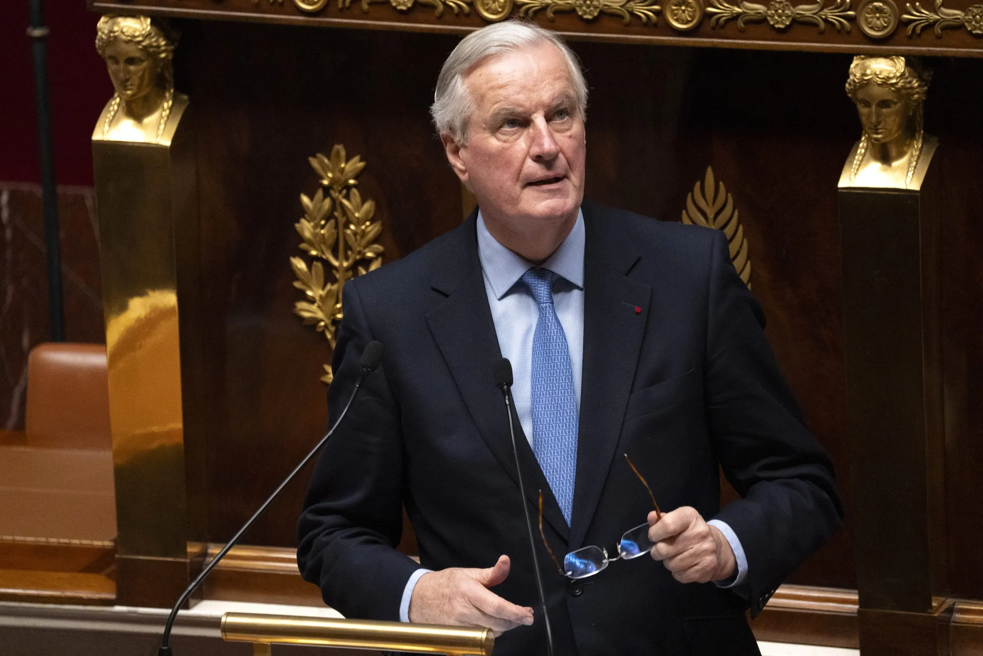 米歇尔·巴尼耶在12月4日巴黎国民议会的信任投票辩论中发言。