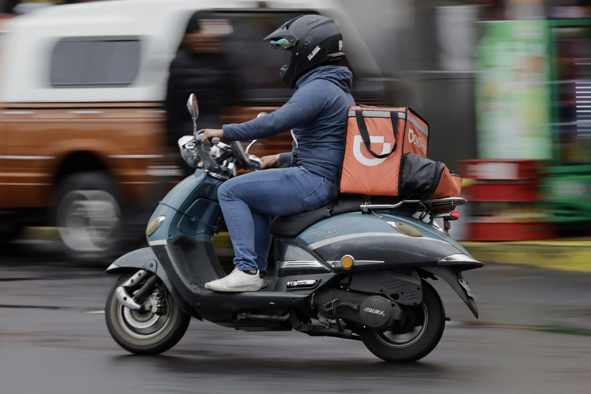 墨西哥城的一名食品配送司机。摄影师:Gerardo Vieyra/NurPhoto/Getty Images