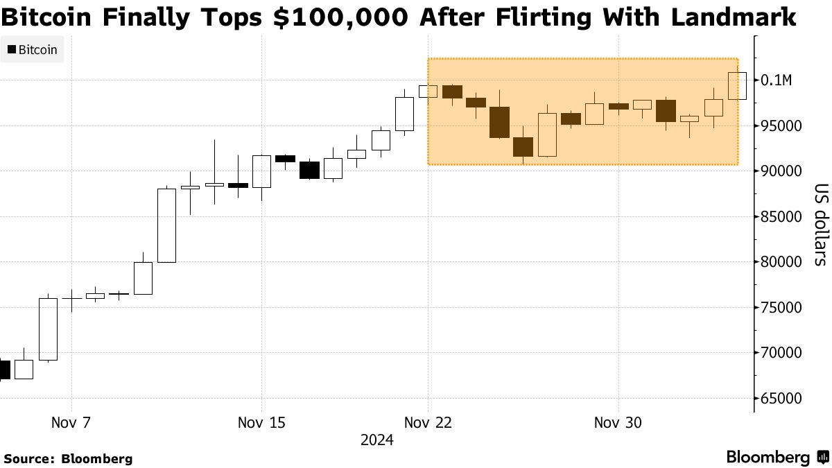 当选总统唐纳德·特朗普选择一位加密货币支持者担任美国证券监管机构的新负责人时,比特币飙升至创纪录的100,000美元,因为交易者对放松监管的前景感到兴奋。