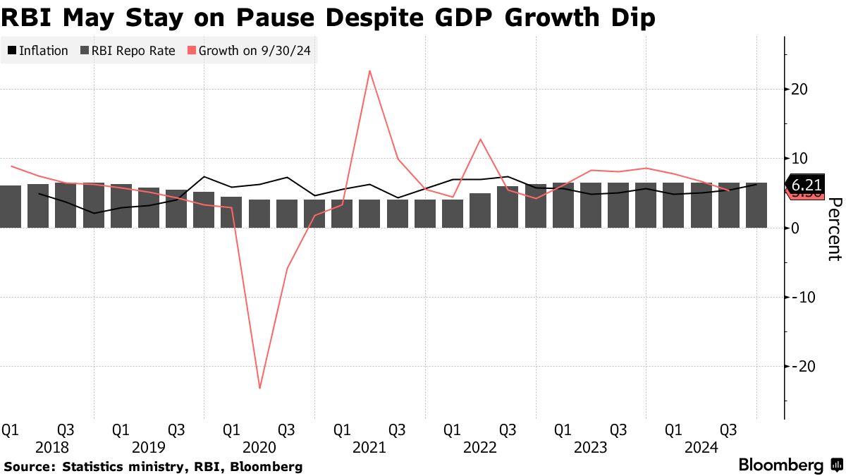在十月的审查中,外部成员纳盖什·库马尔投票支持降息四分之一个百分点。随着降息呼声的增加,更多的货币政策委员会成员可能会加入他。Emkay金融服务有限公司的经济学家马达维·阿罗拉预计至少有两名成员会投票支持降低关键利率以促进增长。