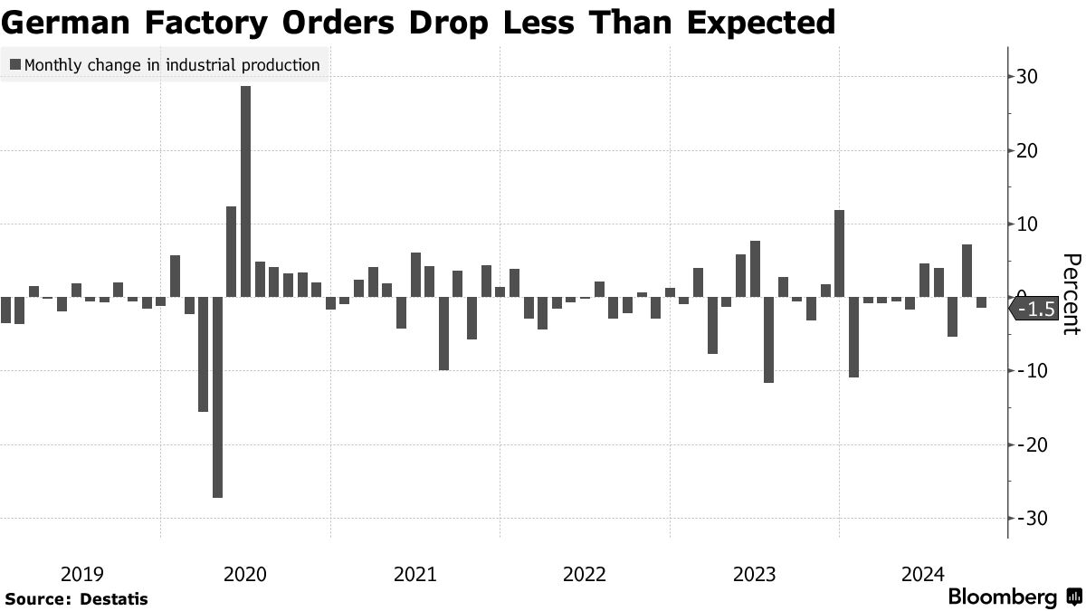 德国10月份工厂订单下降幅度低于预期 - 彭博社