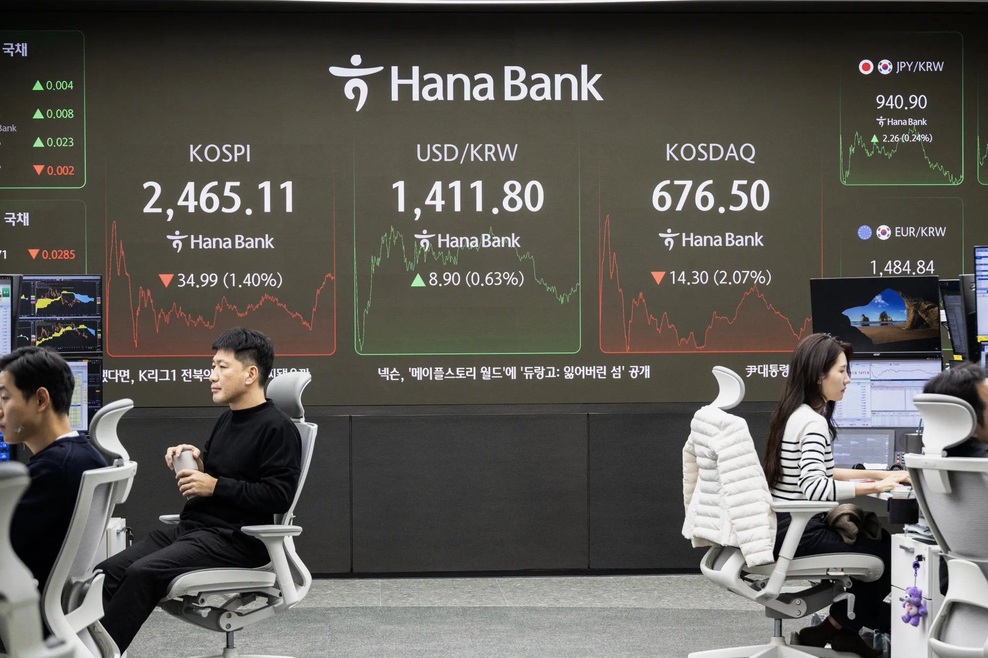 2024年12月4日,韩国首尔的 Hana Bank 交易室。