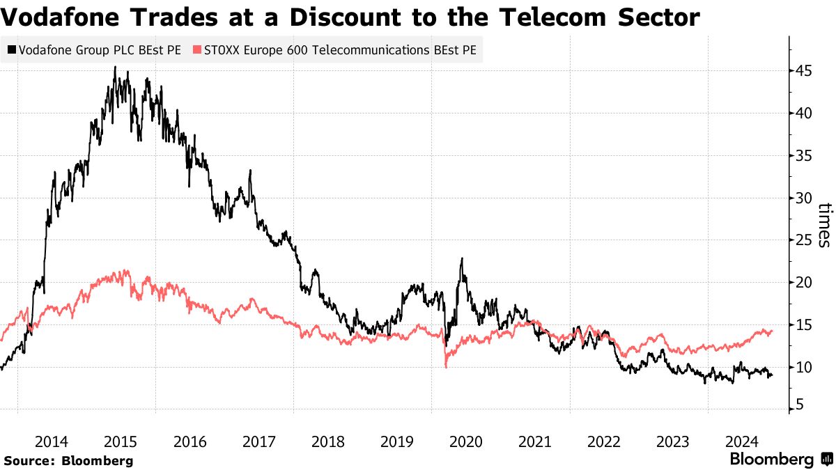 在沃达丰的案例中,其市场价值仅为科技泡沫期间峰值的一小部分,市盈率比行业低36%。