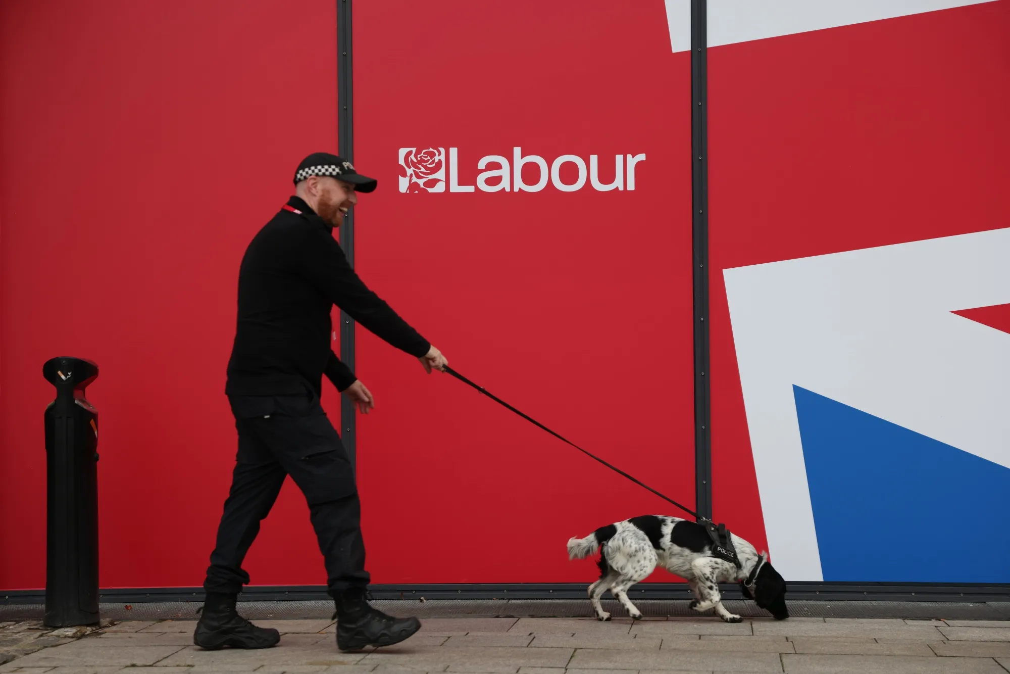 一名警察在9月22日于利物浦举行的英国工党大会上与一只侦查犬。摄影师:霍莉·亚当斯/彭博社罗马尼亚总统候选人卡林·乔治斯库——一位对疫苗持怀疑态度的人,认为登月是伪造的,并赞扬俄罗斯领导人弗拉基米尔·普京——在上个月的第一轮选举中民调仅在个位数,因此他的胜利令国家及其盟友感到震惊。如果他在周日的决选中再度获胜,这可能会改变北约一个关键成员的方向,在欧洲东部边缘的一个敏感时刻。