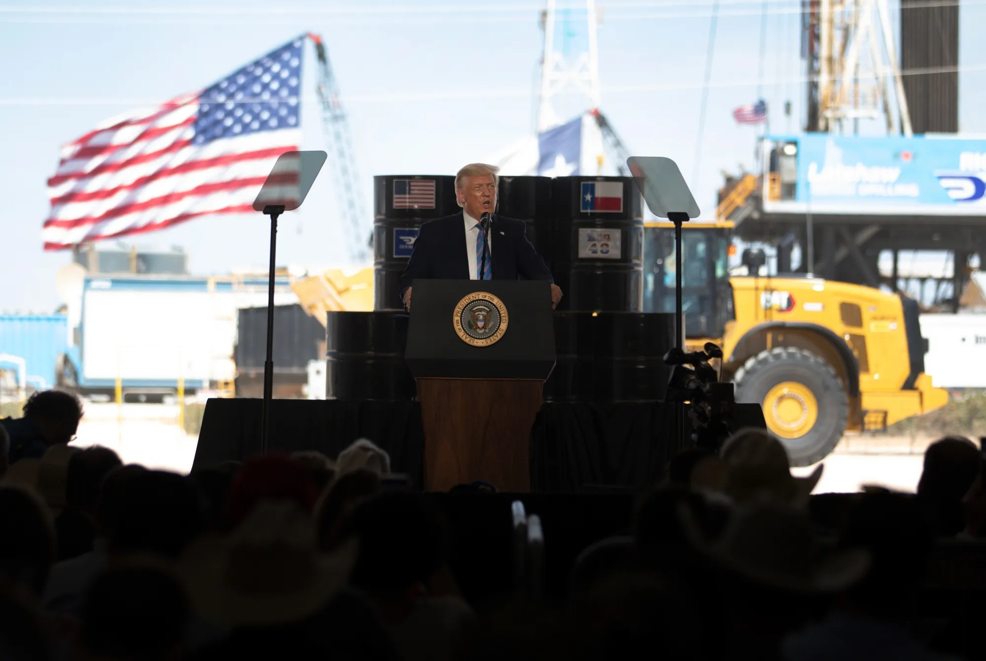 唐纳德·特朗普在德克萨斯州米德兰的一座活跃油井现场。