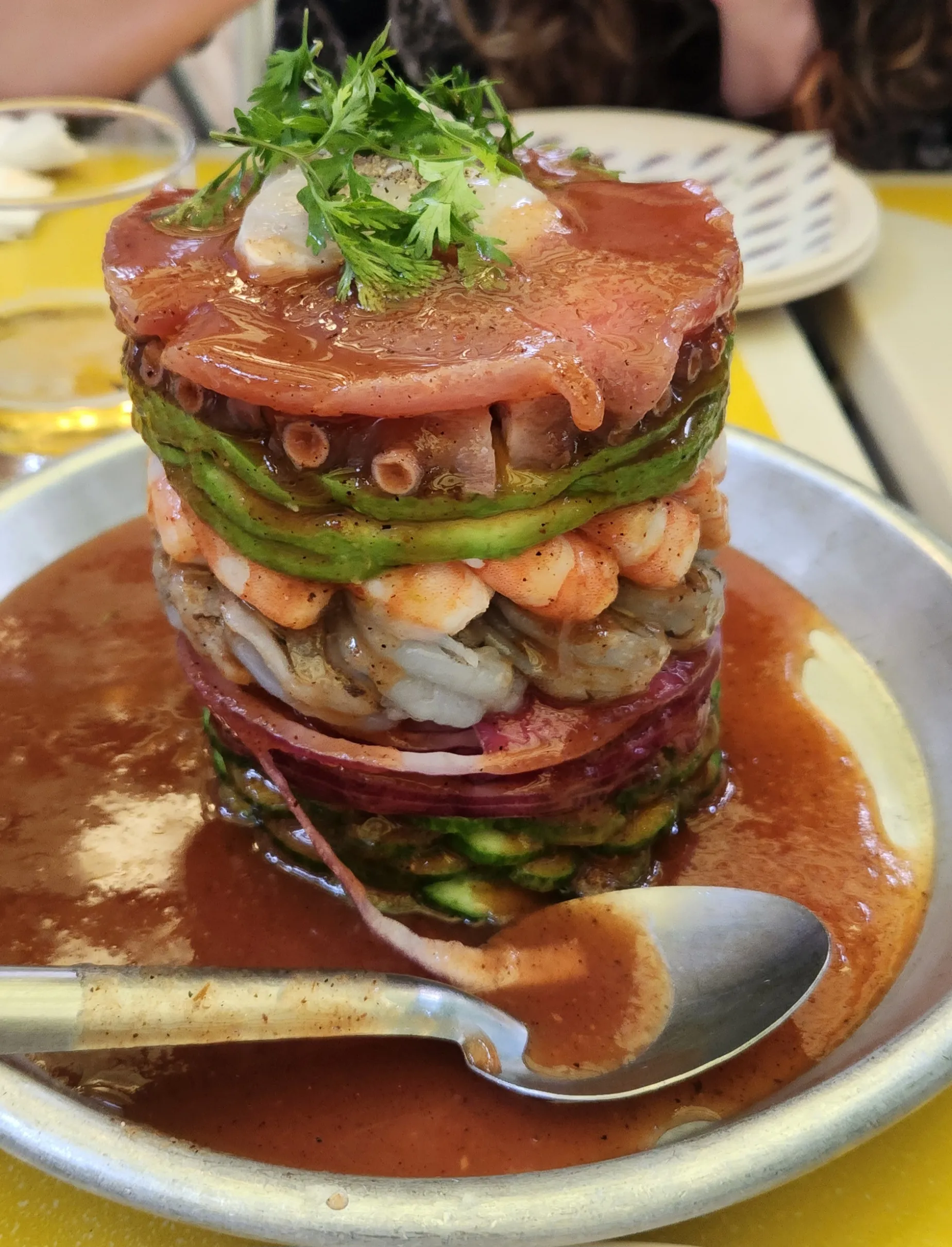 在墨西哥城挑选一家好餐厅就像从加利福尼亚的农场摊位或杂货店挑选水果一样:你会被可供选择的种类所宠坏。如果我必须选择一家,我会选择这家专注于来自太平洋沿岸新鲜海鲜的新餐厅,让你感觉仿佛在阳光明媚的海滩度假。在这里你会找到aguachiles、ceviches和tostadas,但你绝不能错过他们的明星菜品Señora Torres,一座由生虾、熟虾、章鱼、金枪鱼、扇贝、洋葱、黄瓜和鳄梨组成的塔,全部浇上辣椒酱。西纳罗亚流行文化的最佳体现。
